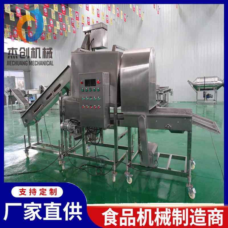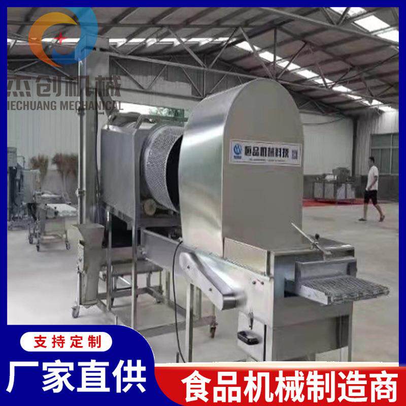 📚 新工艺香辣鸡腿撒粉机 心鸡棒上粉机 配备自动筛粉去除面疙瘩系统