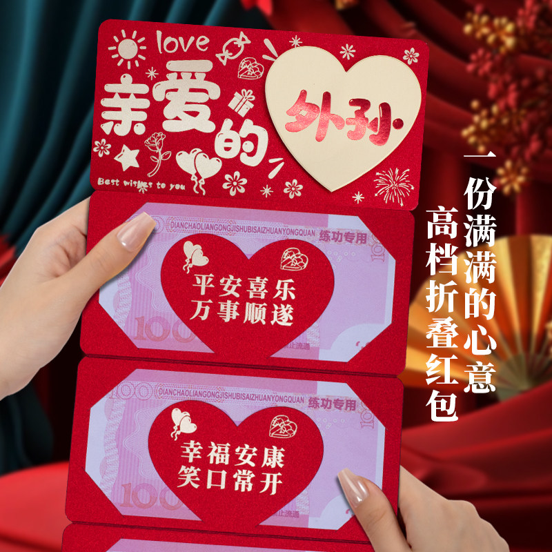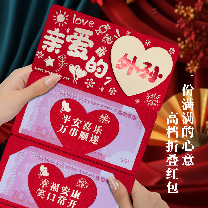 📚 新款折叠卡位生日红包亲爱的外孙红包儿童周岁过年烫金创意利是封