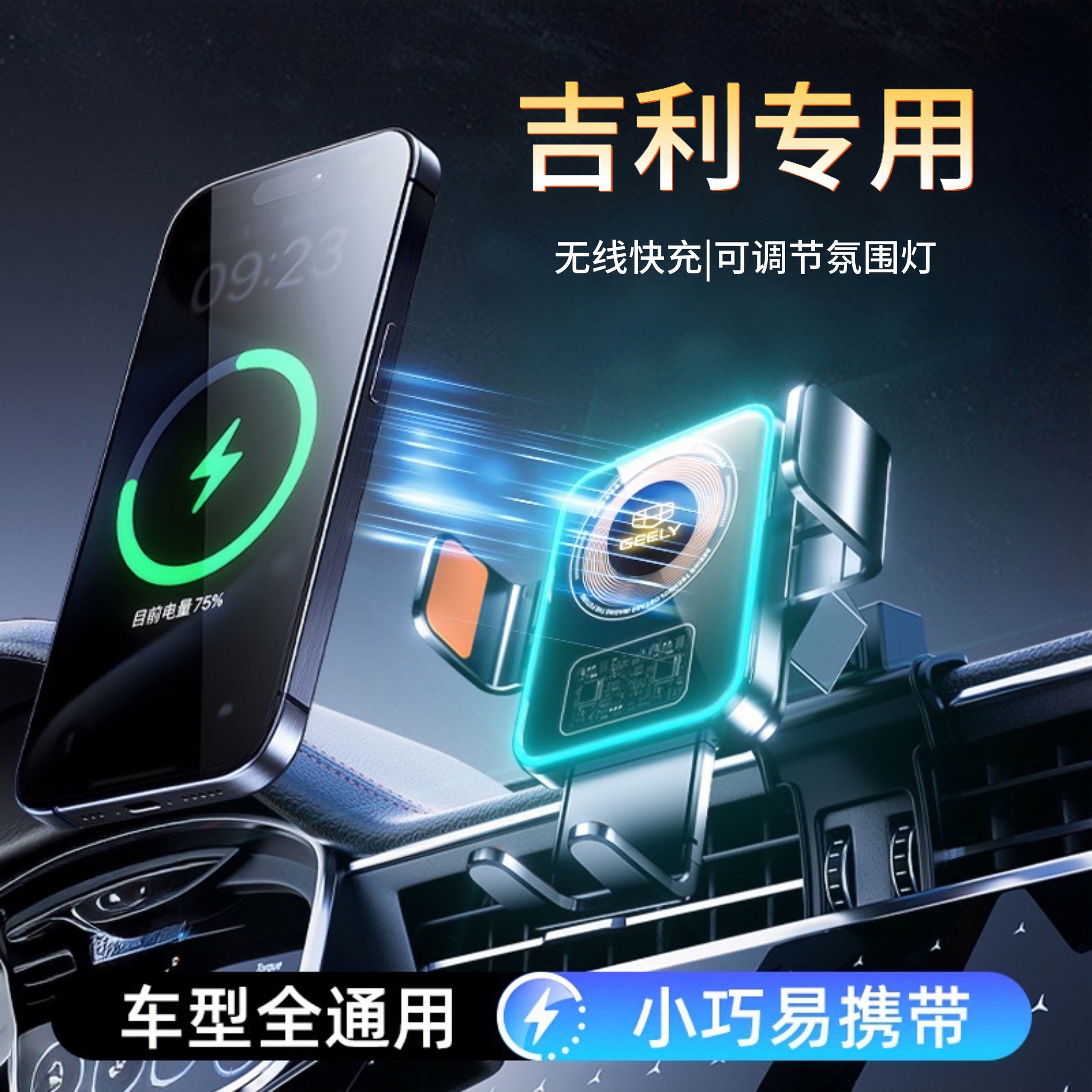 📚 吉利帝豪缤越星瑞博瑞远景博越星越专用手机车载导航支架无线充