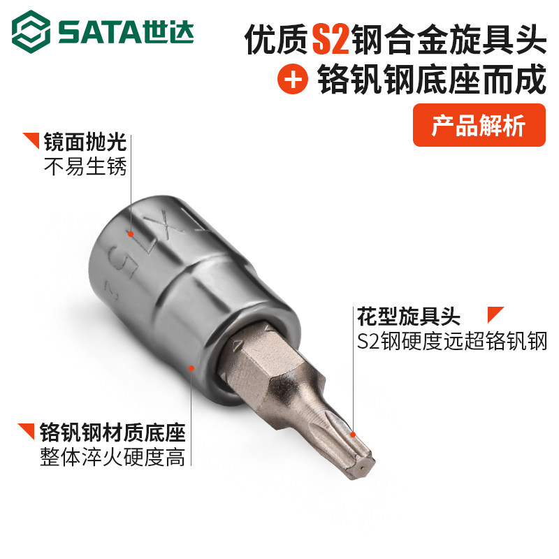 📚 世达花形旋具套筒小飞6.3mm飞扳T8/10/15/20/25/30套管内六花批头
