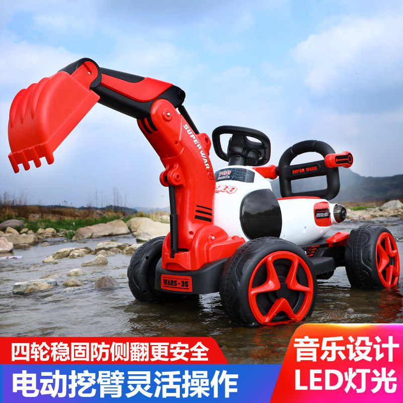 📚 萨玛特儿童电动挖掘机宝宝大号挖土机小孩工程玩具车带音乐可坐人