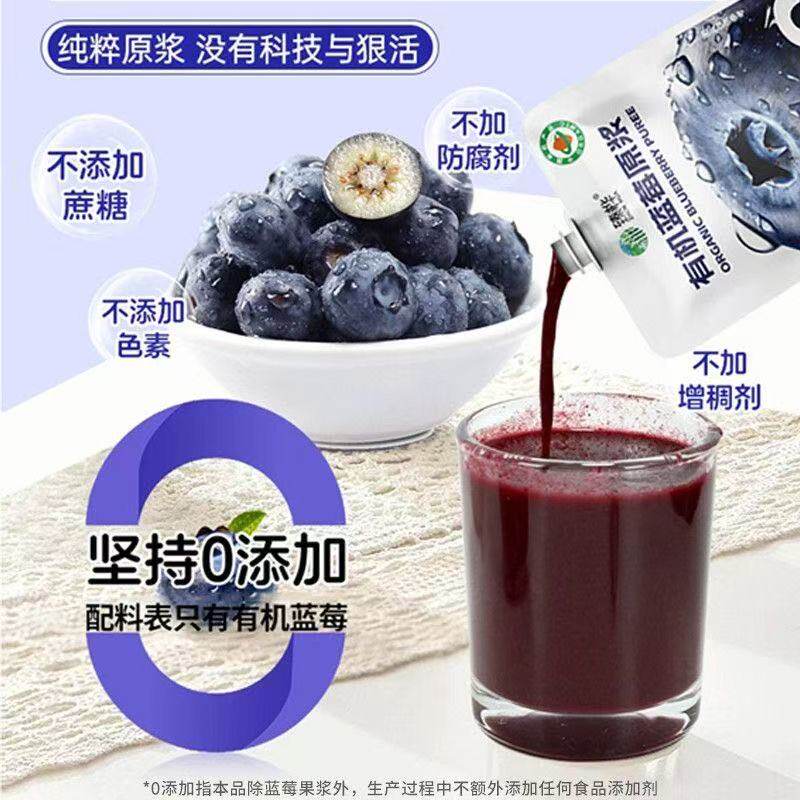 📚 臻桦有机蓝莓原浆伊春小兴安岭特产NFC100%果汁添加100ml袋装