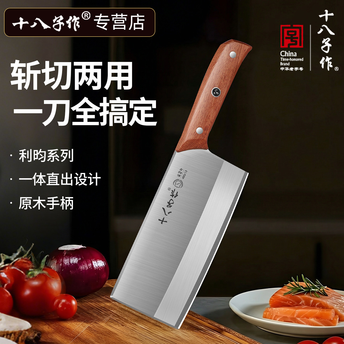 📚 十八子作厨师专用斩切刀商用切片砍骨刀锋利阳江正宗家用厨房菜刀