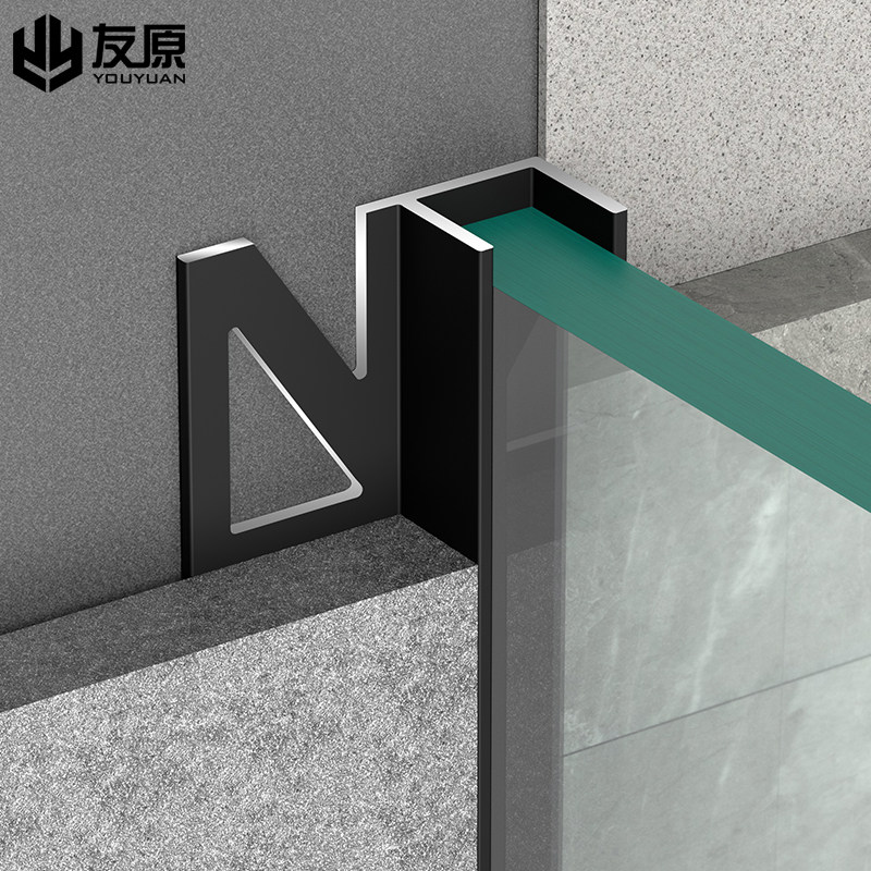 📚 铝合金F型玻璃卡槽下沉式淋浴房浴室卡槽卫生间隔断预Y埋件收边条