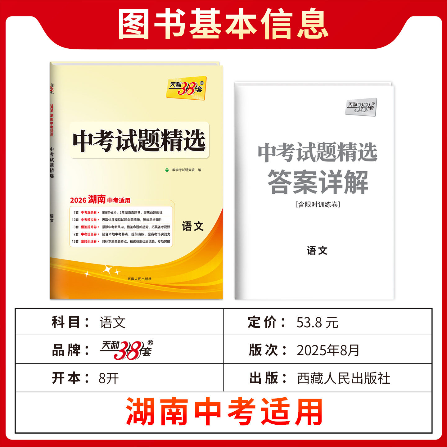 📚 【湖南专用】天利38套2026中考试题精选历年中考真题试卷语文数学英语物理化学历史道法湖南中考真题卷全套中考试卷