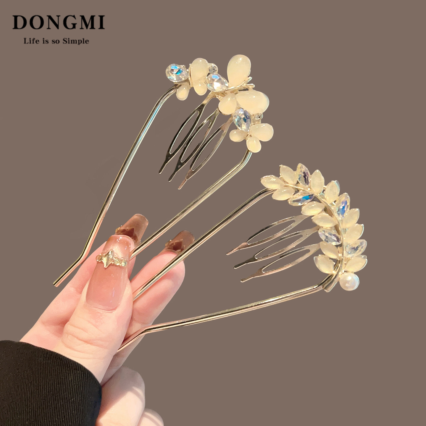 📚 精致猫眼石蝴蝶U型发簪插梳2026新款高级感簪子后脑勺盘发钗头饰