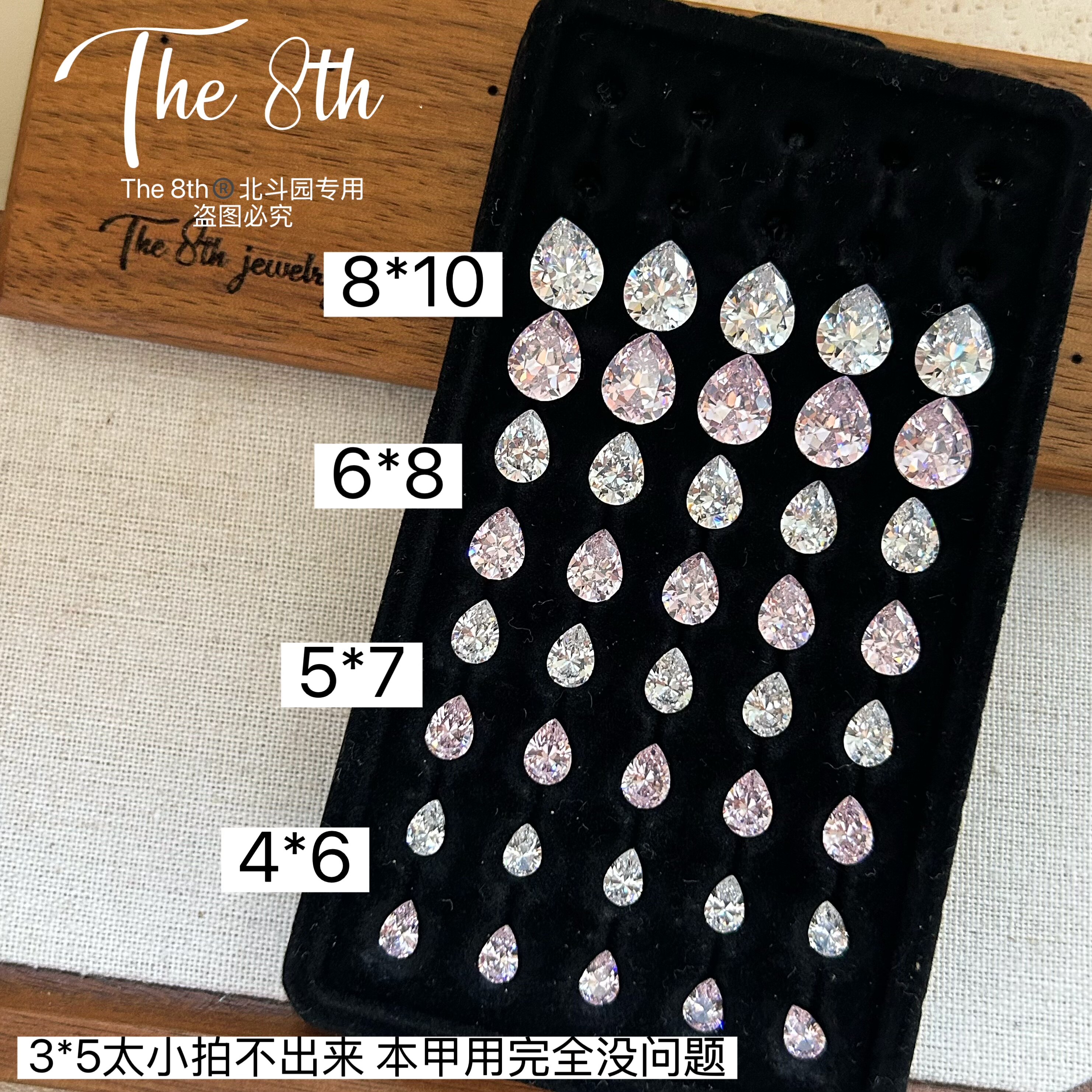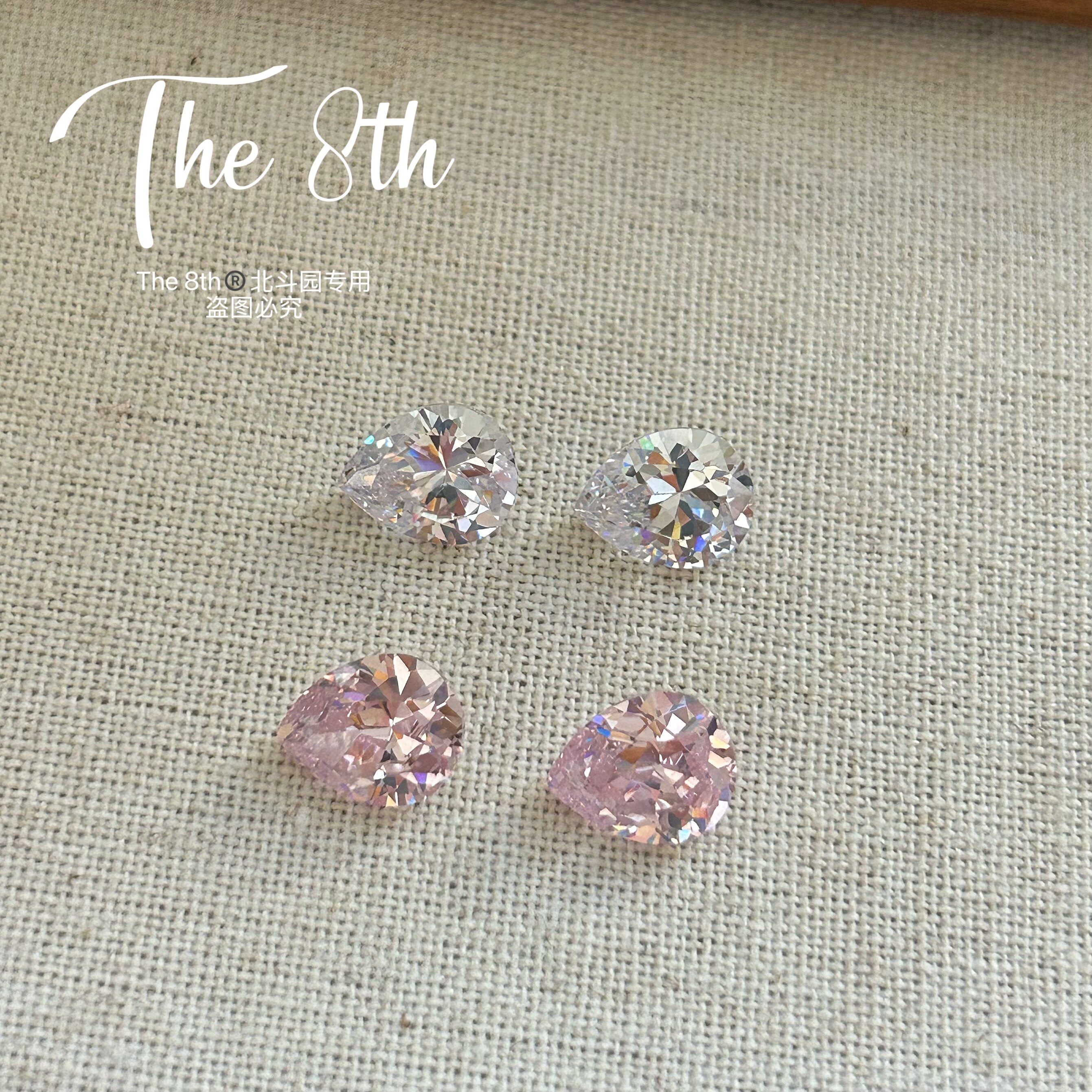📚 The 8th水滴梨形锆石超闪裸钻透底美甲钻堆钻粉色白色F2-74
