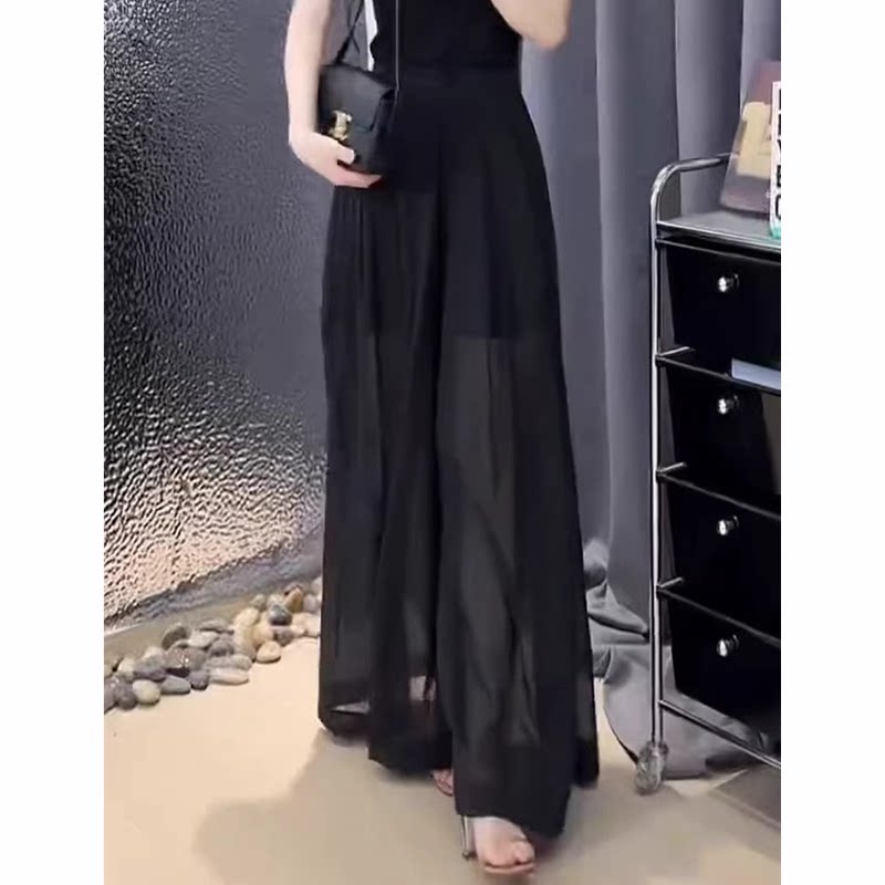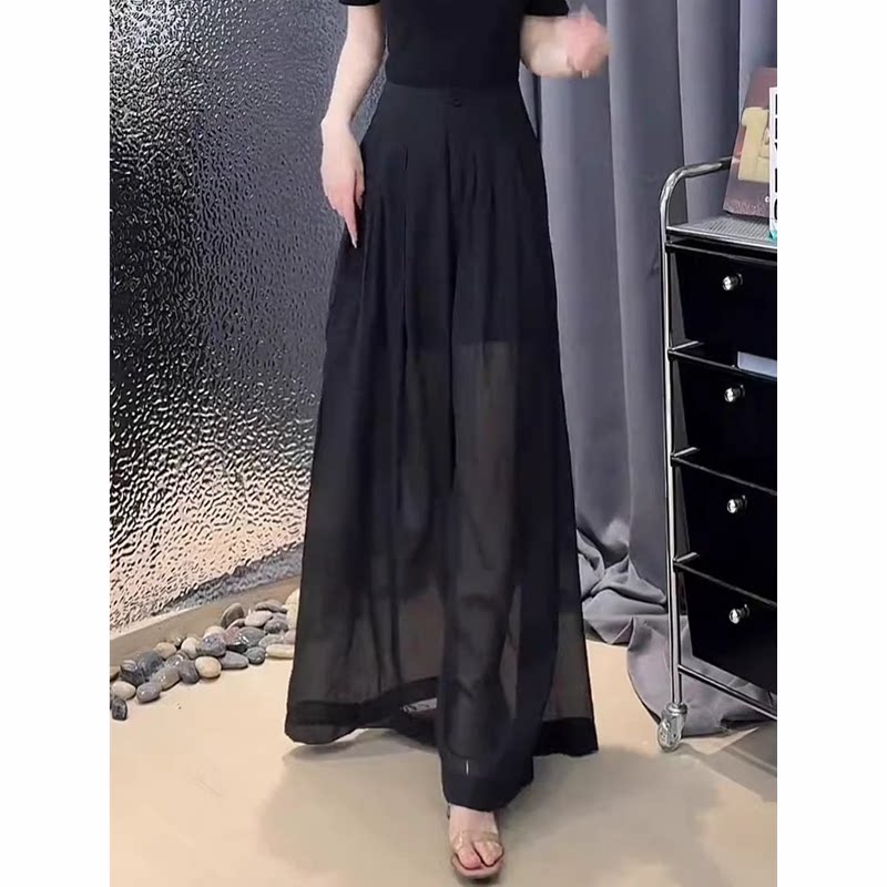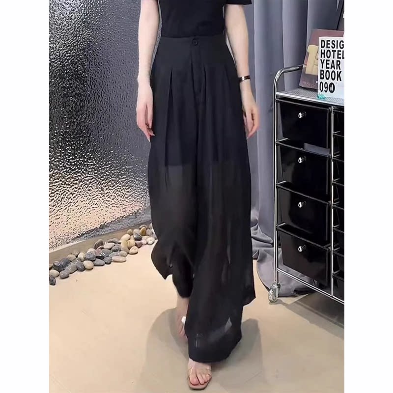 📚 黑色轻薄款轻盈透气高腰裙裤女2026新款高腰显瘦有内衬阔腿裤