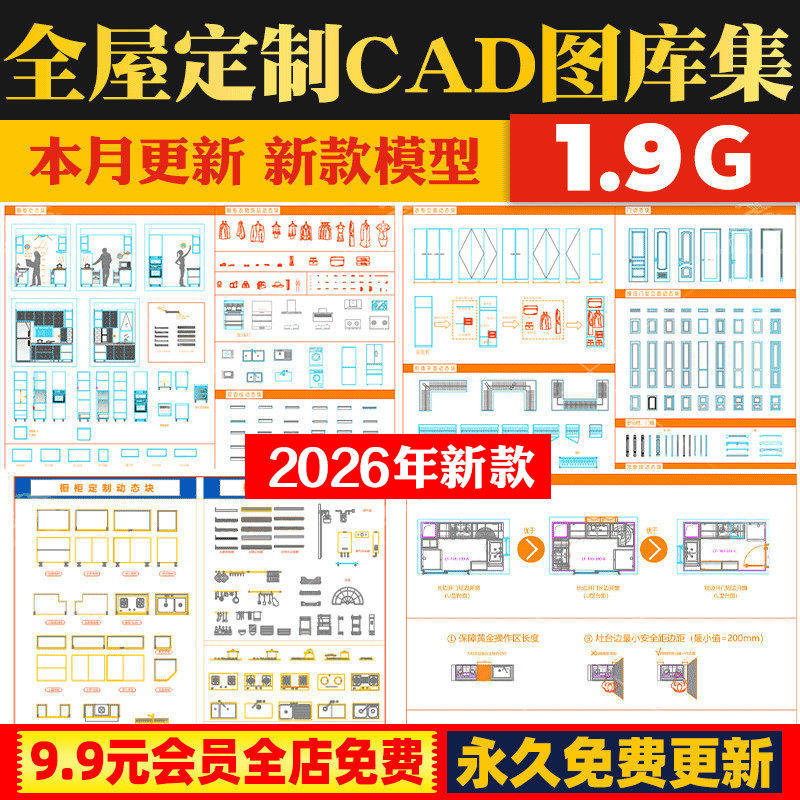 📚 家装别墅全屋定制cad动态图库模块材质填充衣柜橱柜榻榻米衣帽间