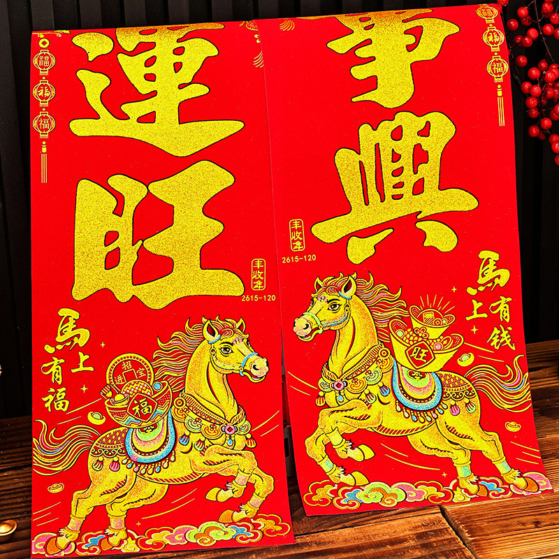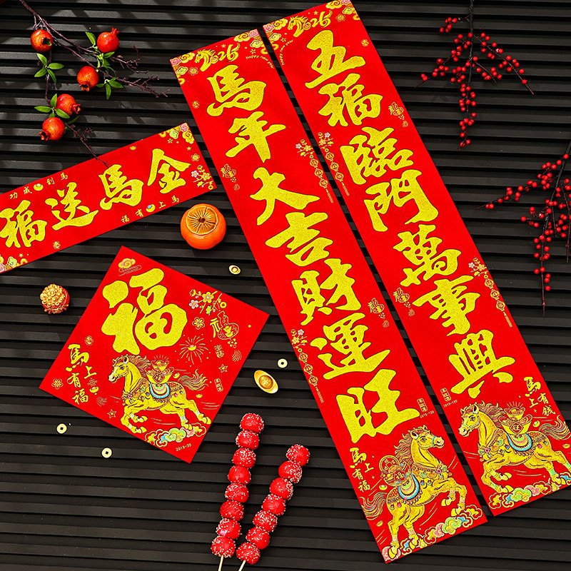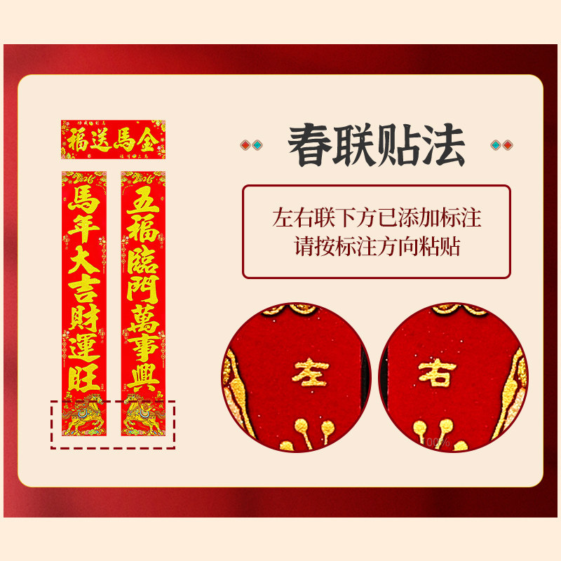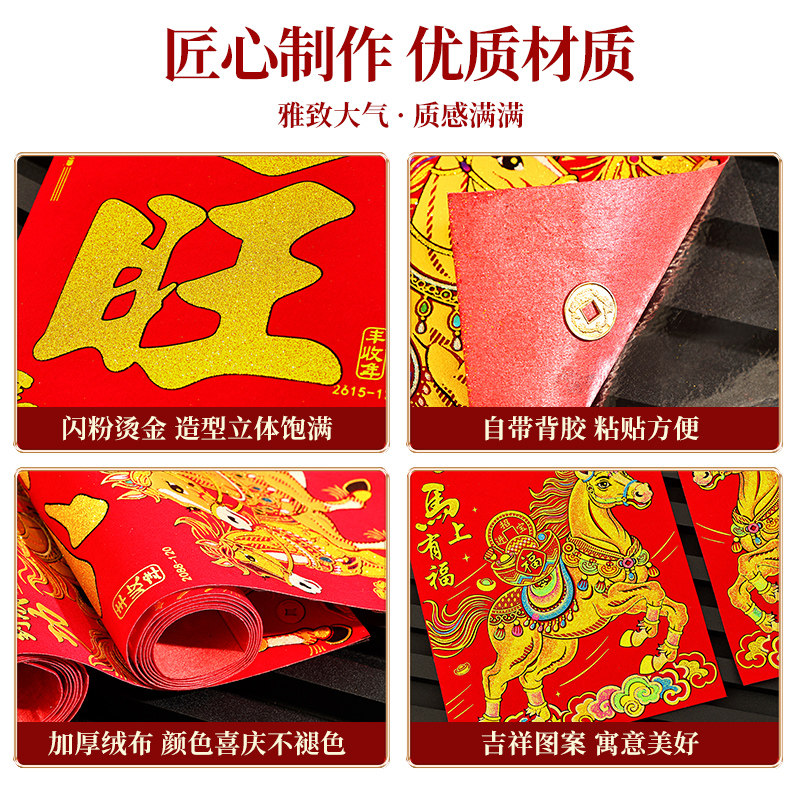 📚 2026马年对联新款新年绒布春联春节过年家用入户大门背胶自粘门联