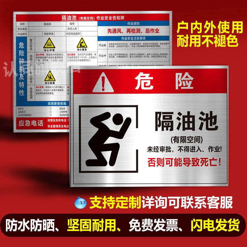 📚 隔油池有限空间警示标识牌作业安全告知牌受限禁止入内标志隔油消防污水井池循环水池冷库处理风险卡标识牌