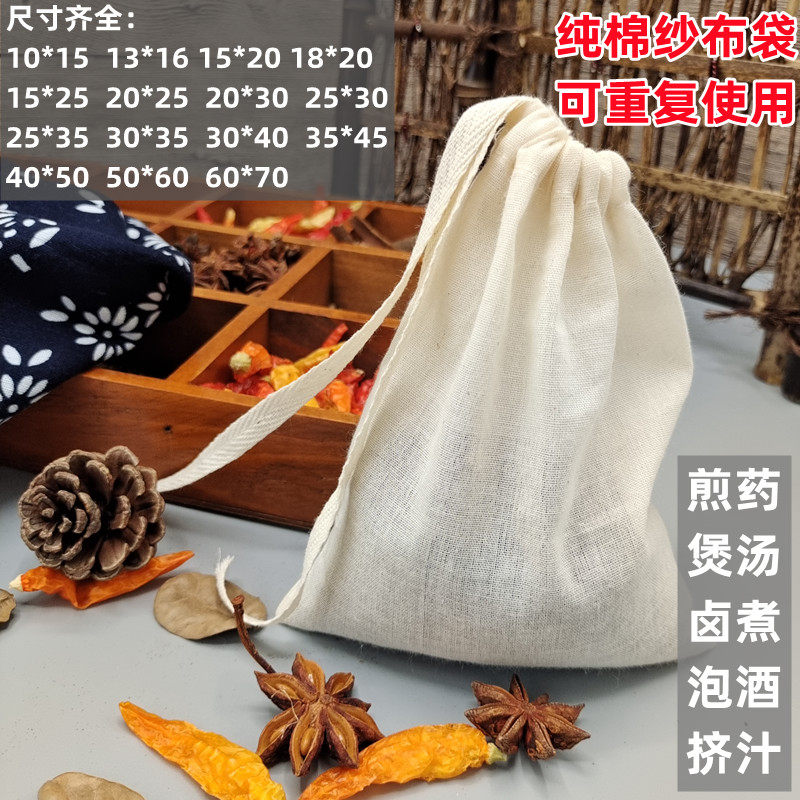 📚 加厚纱布袋纯棉卤料煎药耐高温挤菜汁过滤袋煲汤泡酒隔渣袋食品级