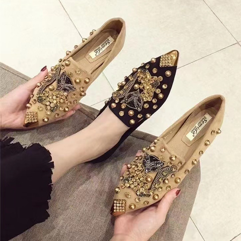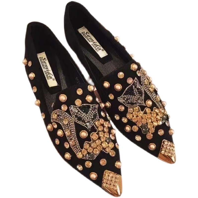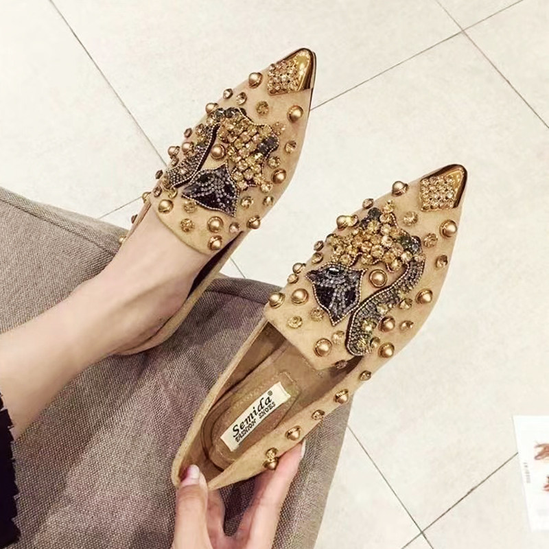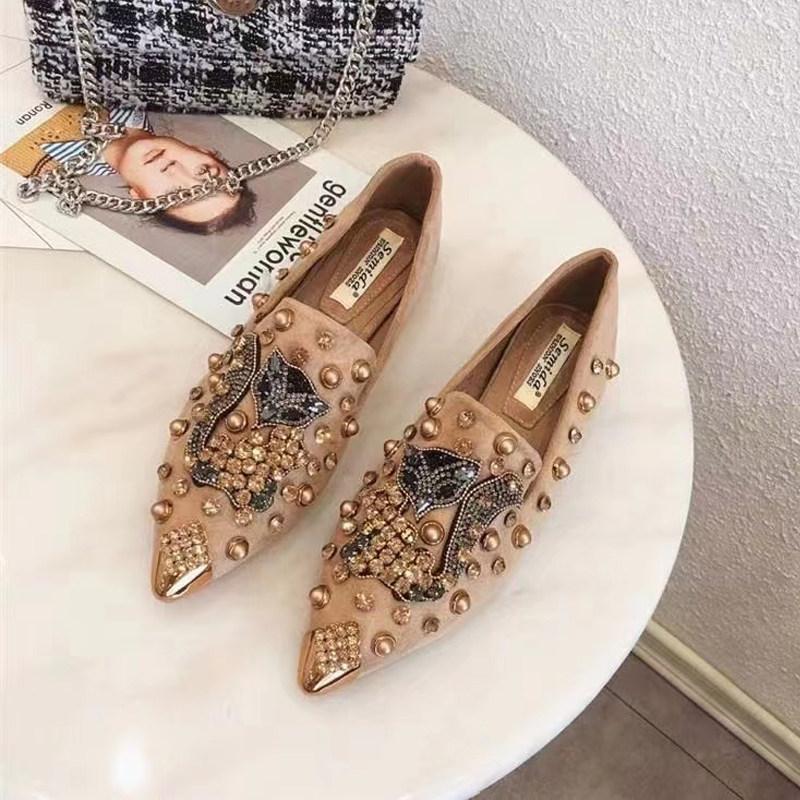 📚 纯手工缝制水钻拼狐狸头时尚尖头平底软底单鞋百搭鞋四季鞋套脚鞋