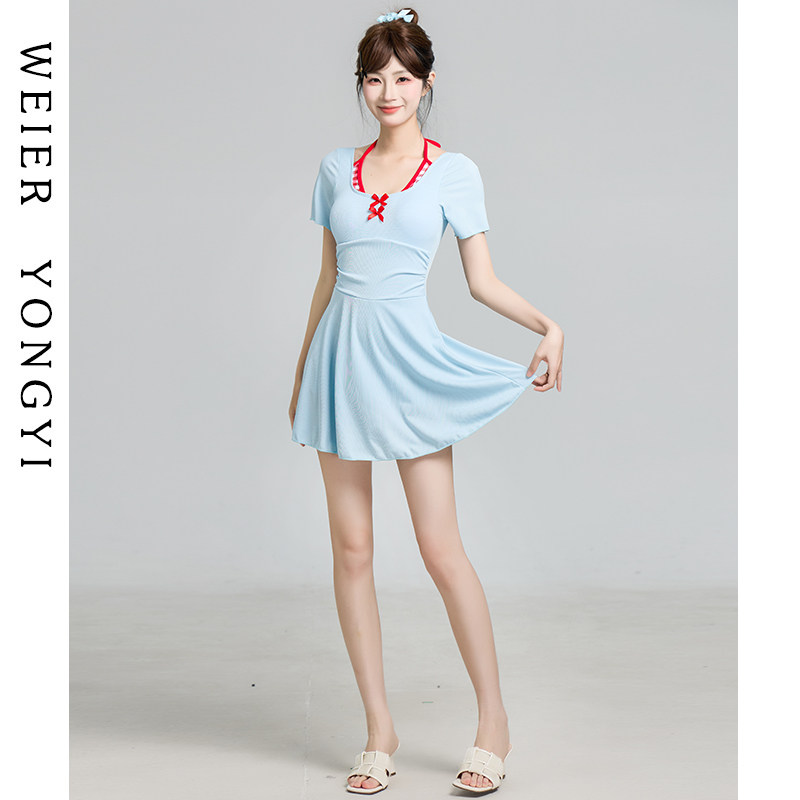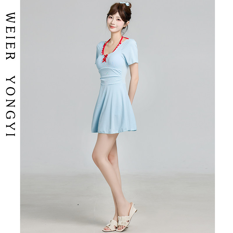 📚 泳衣女款高级感绝美连体裙式甜美少女保守小胸遮肚显瘦泡温泉泳装