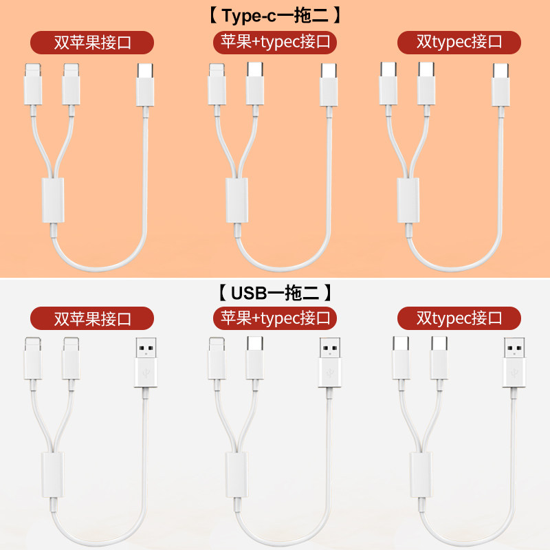 📚 一拖二数据线二合一快充66W适用苹果华为小米双头typec安卓多头tpc手机1分2加长车载usb两用6A充电器线