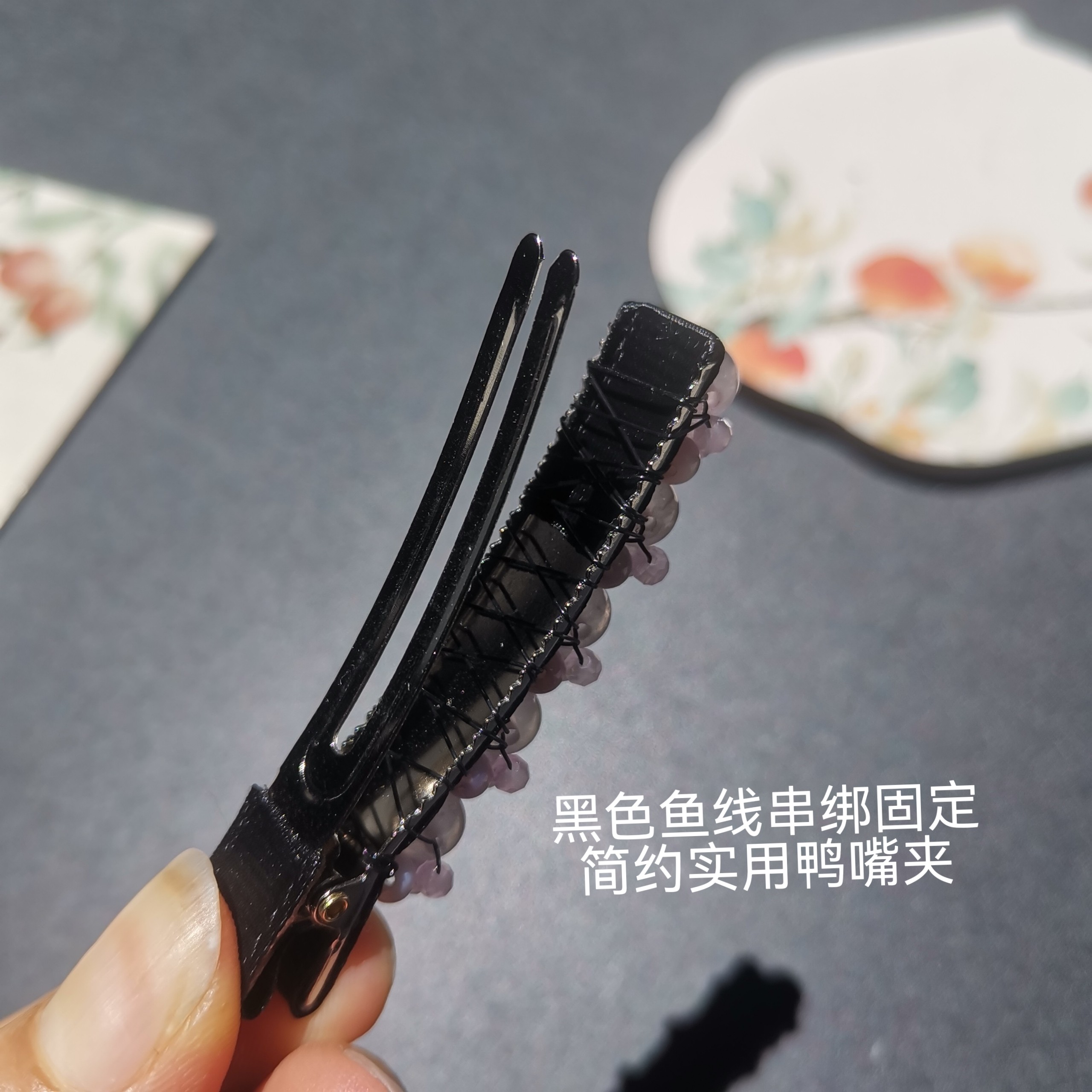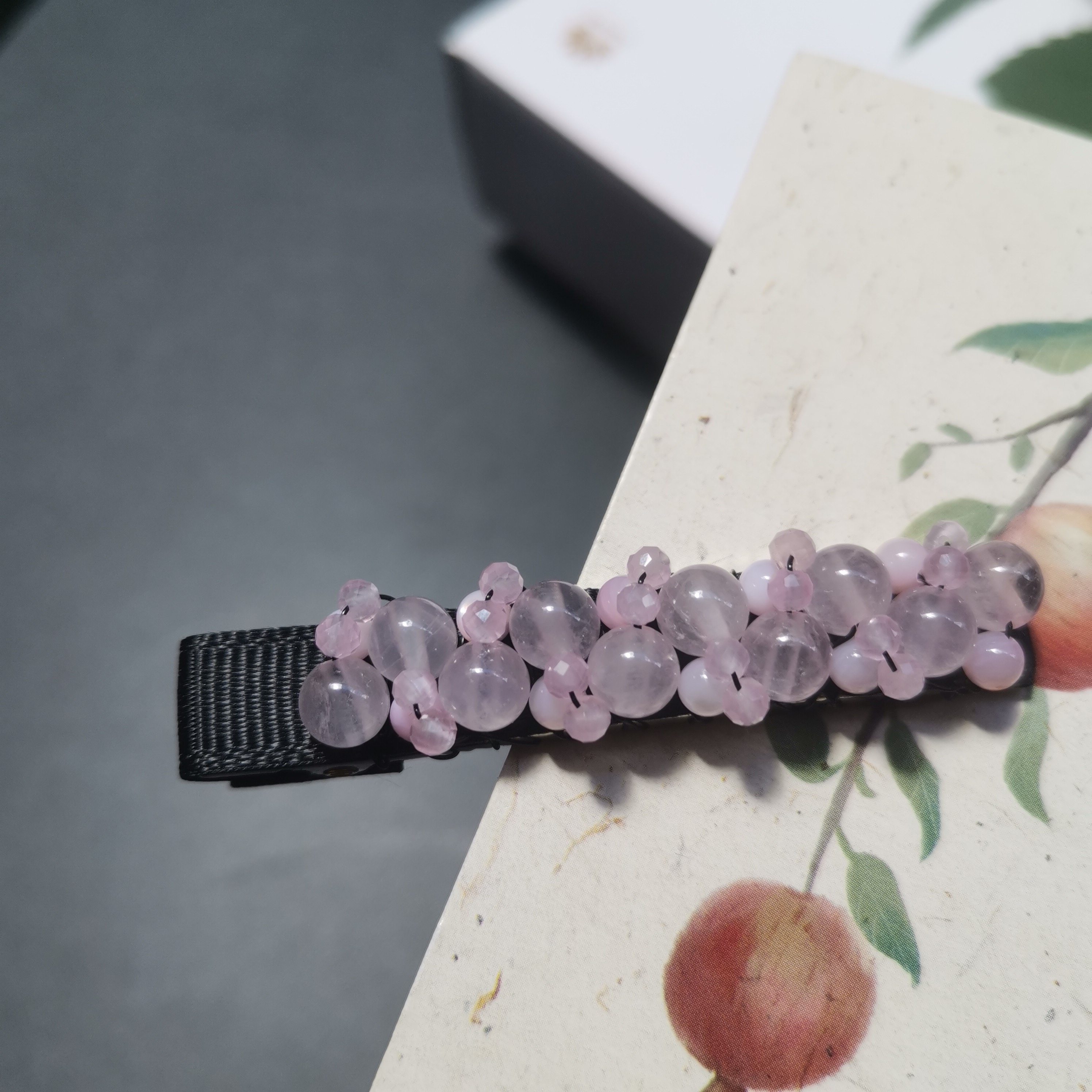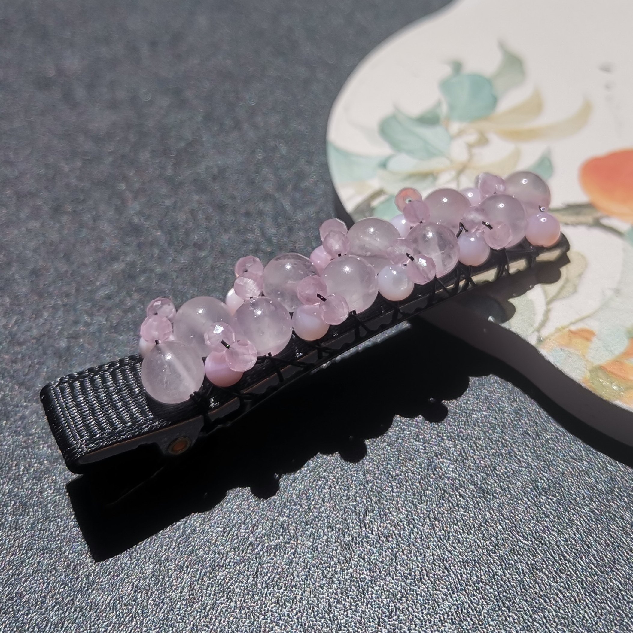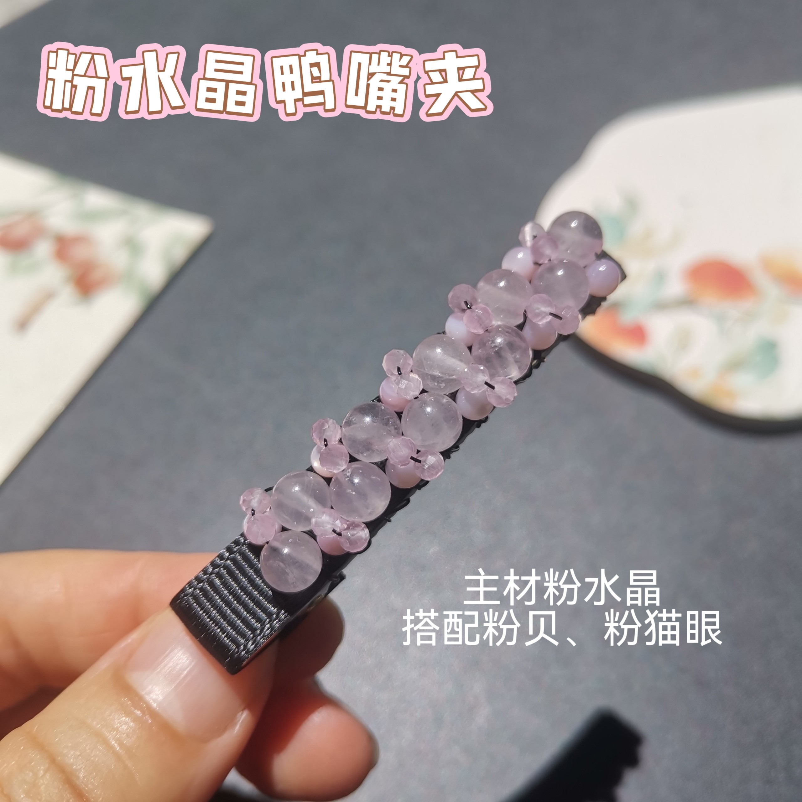 📚 天然粉水晶甜美减龄刘海夹鸭嘴夹碎发边夹卡子耳后侧夹新中式饰品