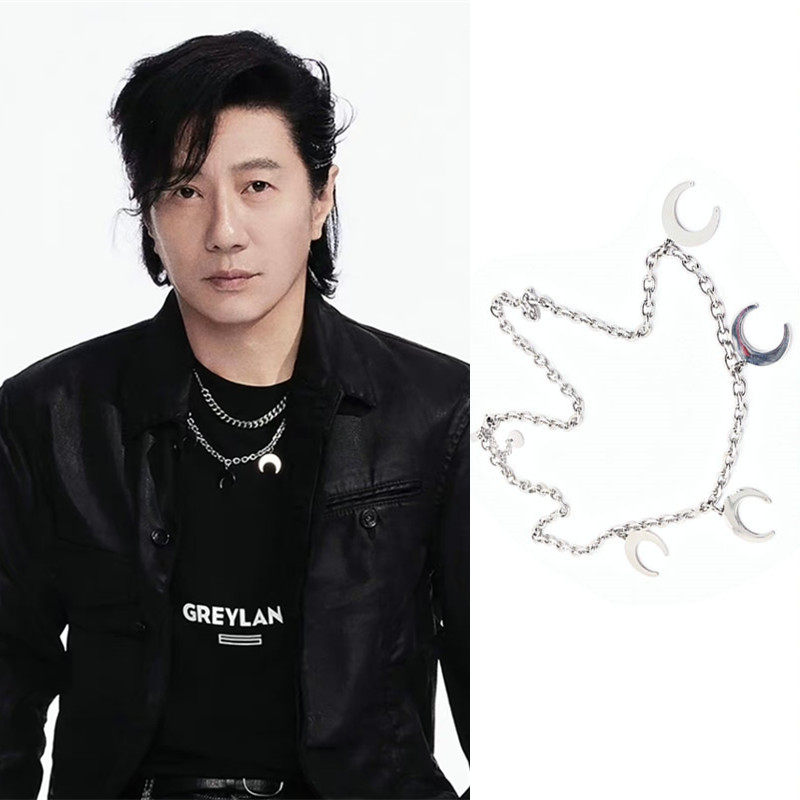 📚 郑钧同款半月亮不对称项链男女嘻哈潮酷钛钢锁骨链披荆斩棘的哥哥