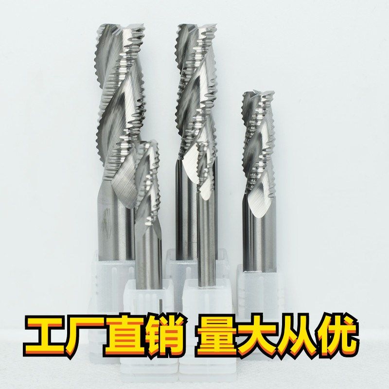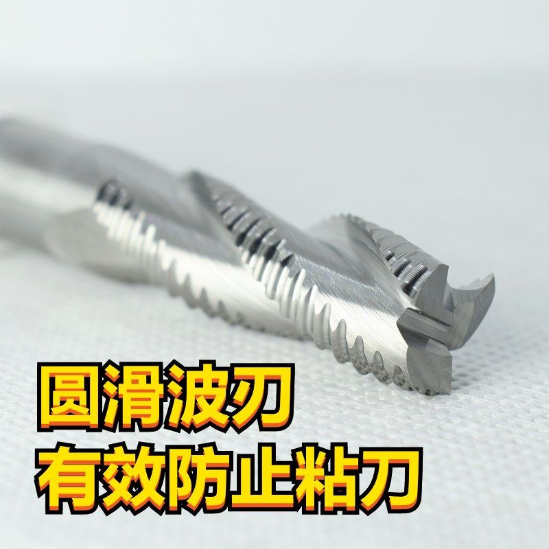 📚 铝用粗皮铣刀55度钨钢3刃开粗合金波刃加长玉米波纹数控立铣刀6mm