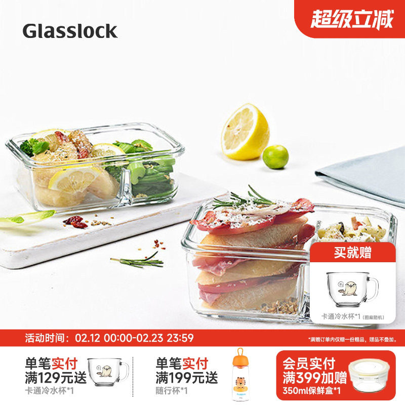 📚 Glasslock盖朗微波炉便当盒上班族饭盒分隔型钢化玻璃保鲜密封盒