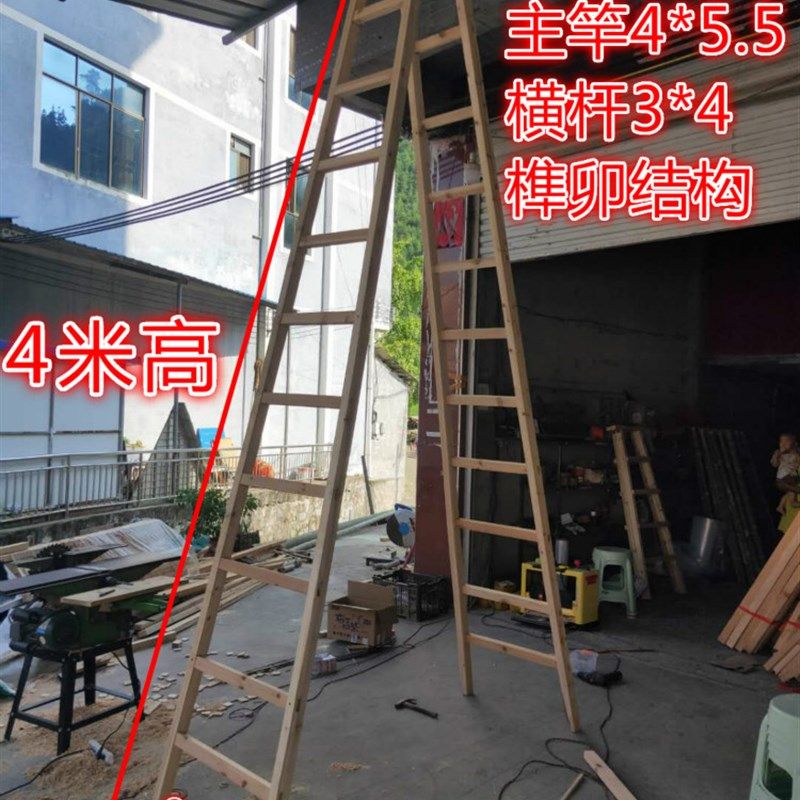 📚 木梯子双侧梯子走梯加厚木头梯子实木登高人字梯工程水电家用楼梯