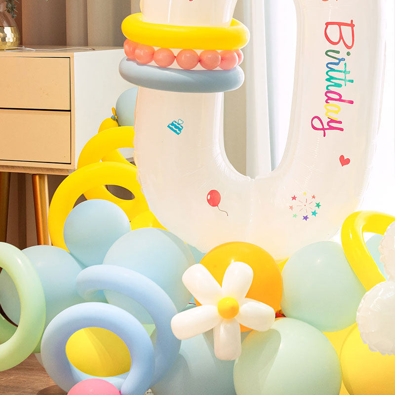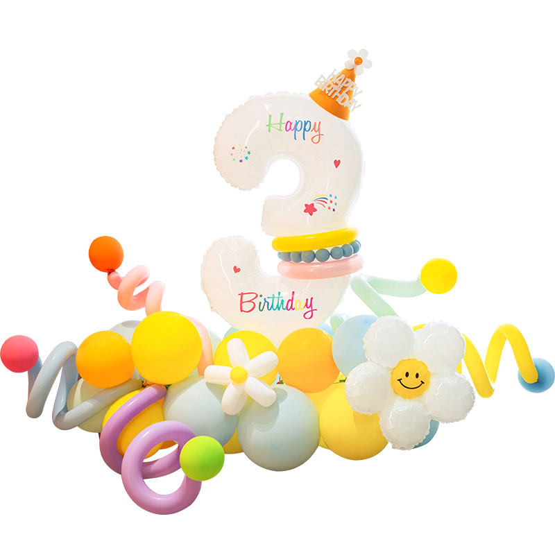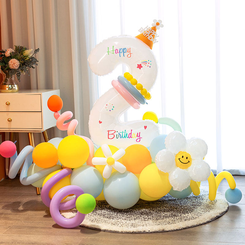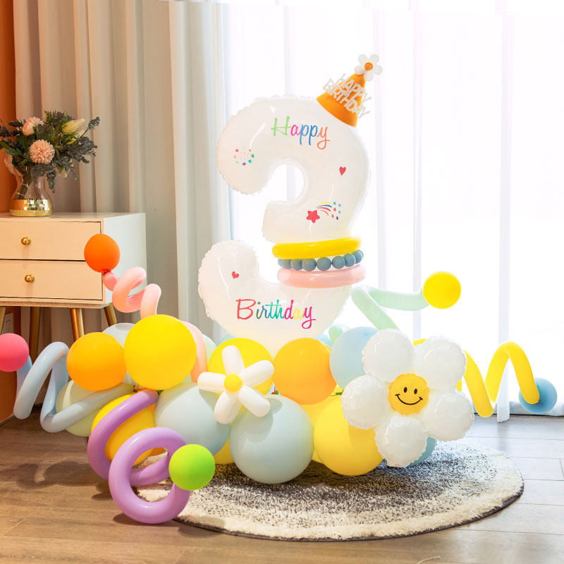 📚 儿童1234白色生日数字气球花立柱男女孩周岁生日派对场景布置装饰