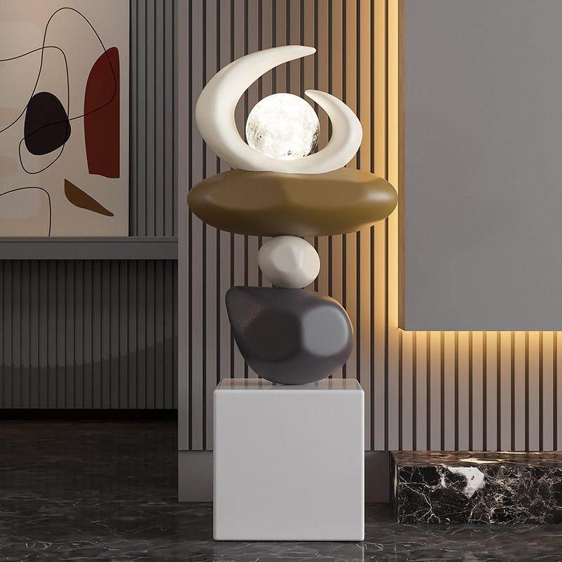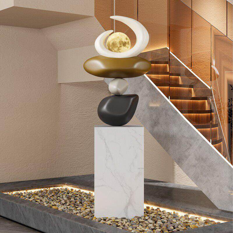 📚 由居 创意重叠石头雕塑样品屋展示中心摆件酒店大堂落地艺术楼梯