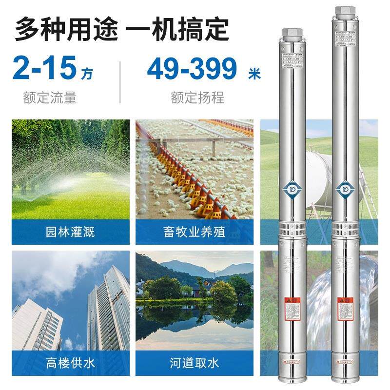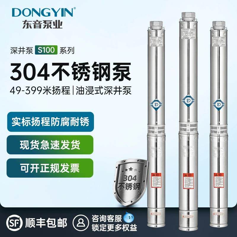 📚 东音S100不锈钢深井泵高扬程潜水泵农用灌溉380V三相井用抽水泵