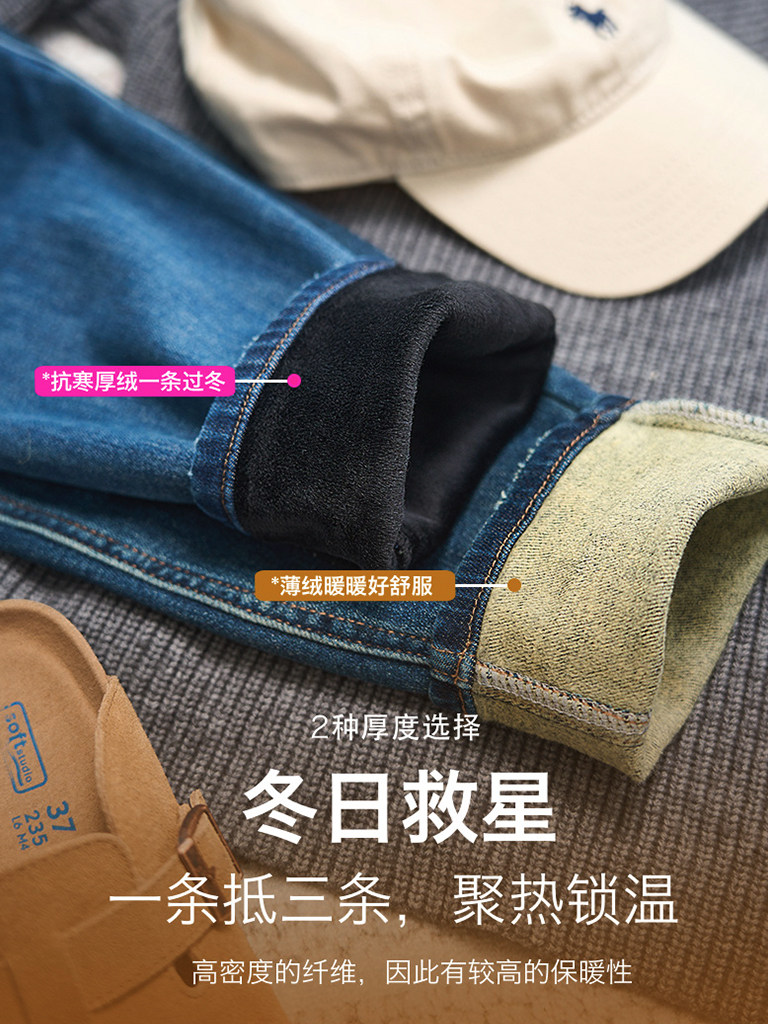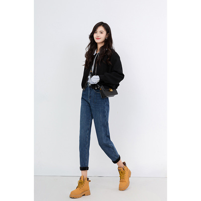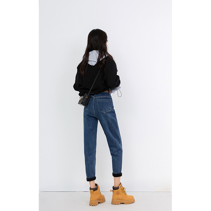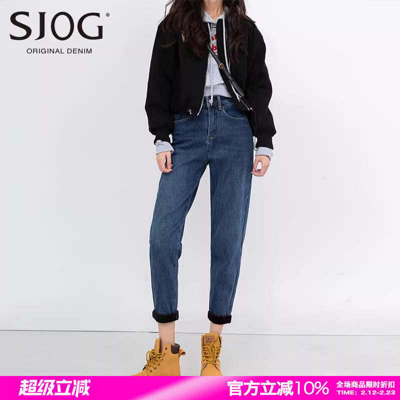 📚 SJOG小个子加厚绒高腰哈伦牛仔裤女秋冬宽松显瘦加绒保暖老爹裤子