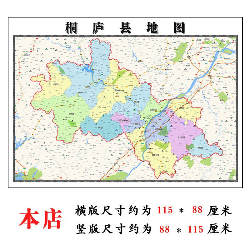 📚 桐庐县地图1.15m杭州市家用折叠高清办O公室书房装饰画墙贴