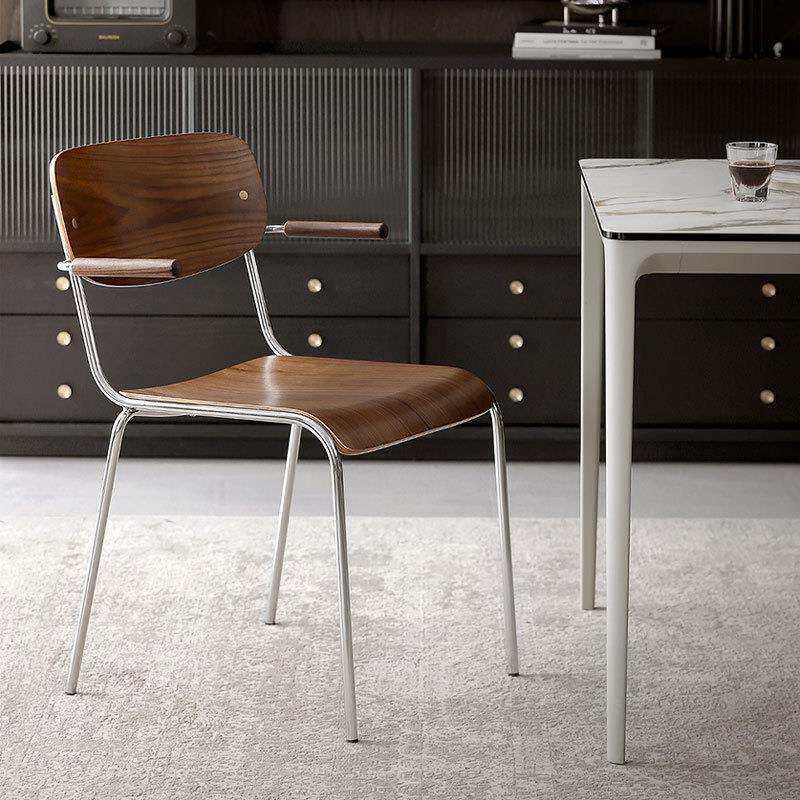 📚 北欧表情norhor简约复古金属/MESSI不锈钢胡桃木曲木座面扶手餐椅