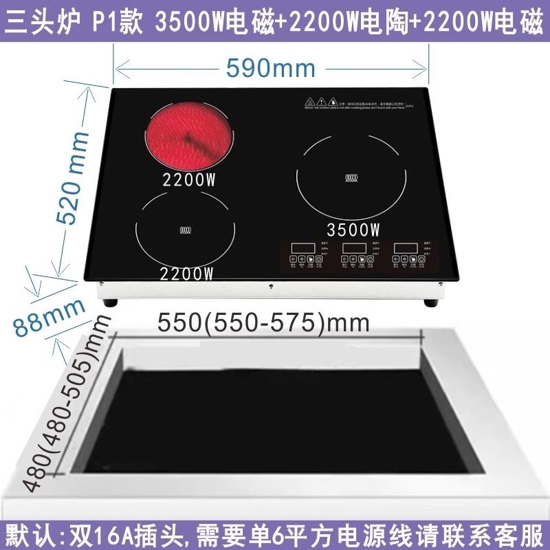 📚 三头电磁炉商用大功率酒店饭店用式电陶炉多头电磁灶台镶嵌式嵌入