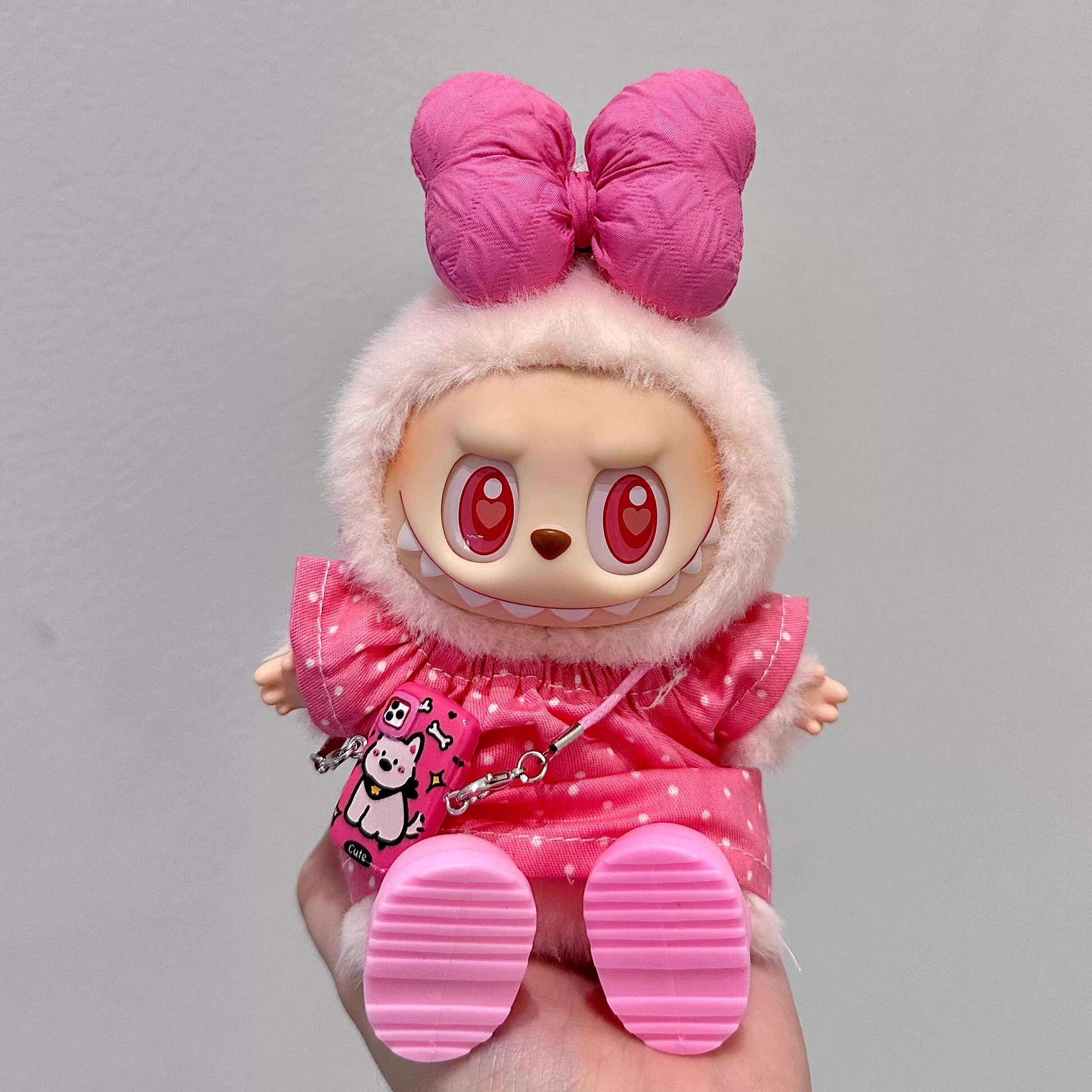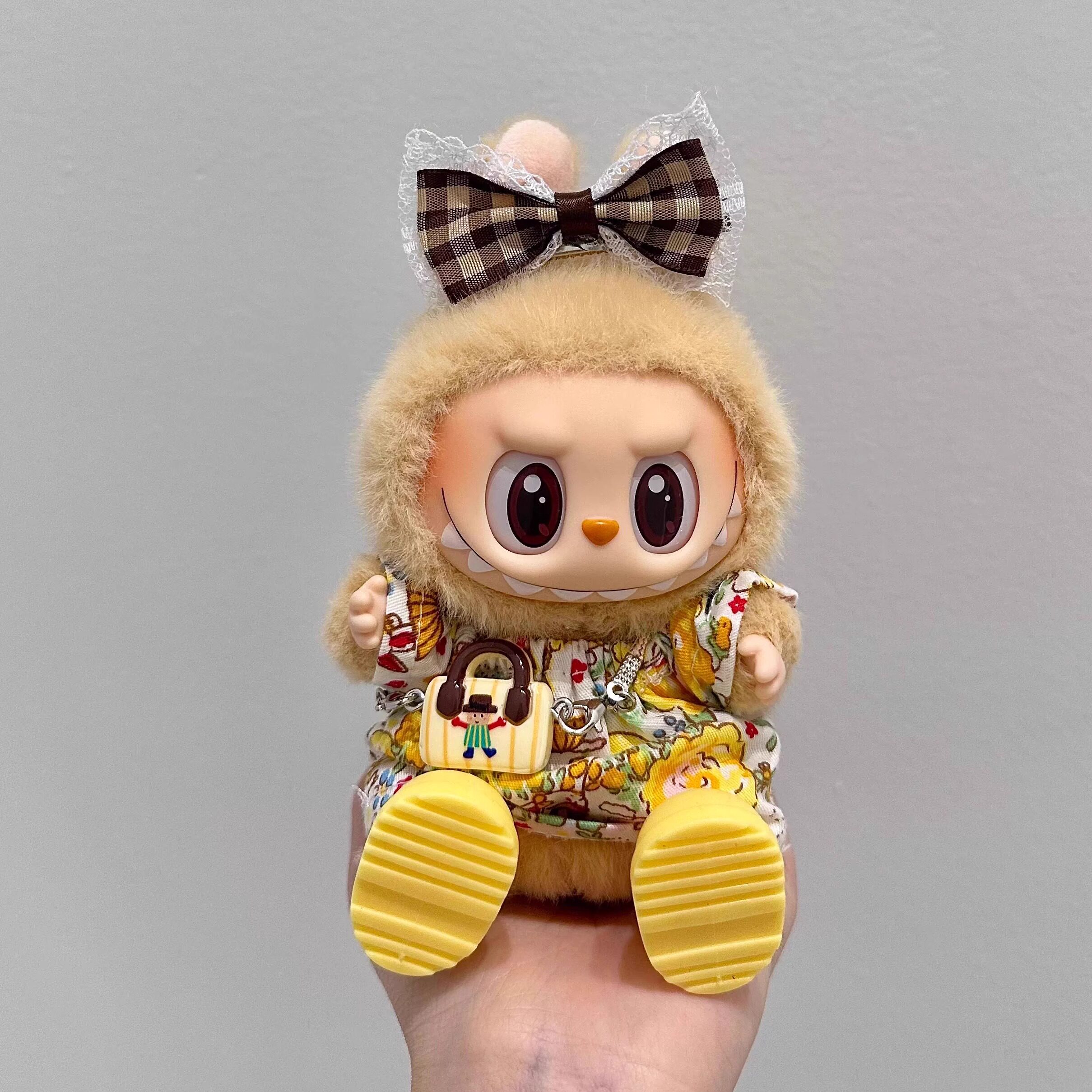 📚 眼巴巴坐坐派对Labubu娃衣15cm搪胶拉布布T恤衣服套装123.0代耳机