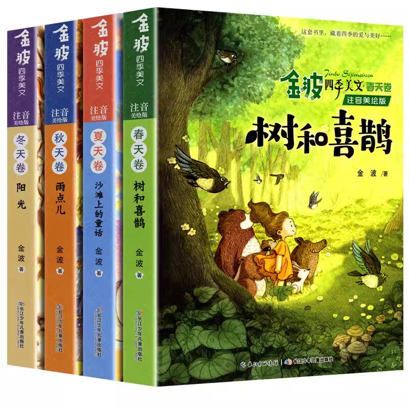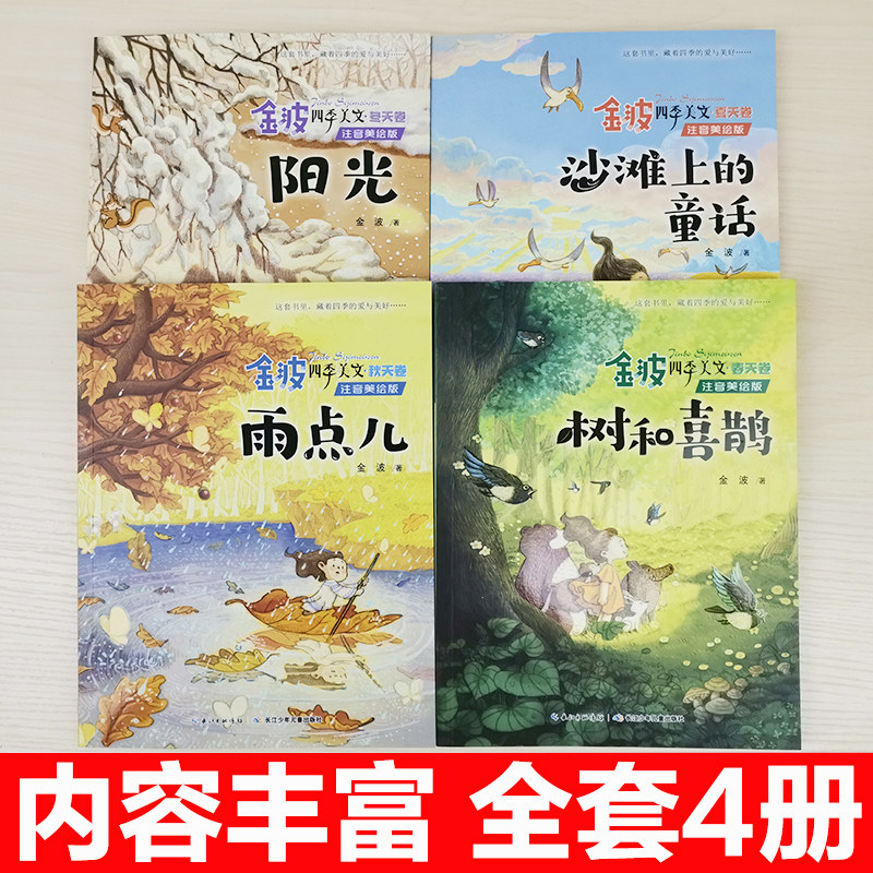 📚 4册金波四季美文精读课程春天卷夏秋冬四季的变化雨点儿阳光树和喜鹊沙滩上的童话故事6岁以上注音版二年级阅读课外书必读上册dr