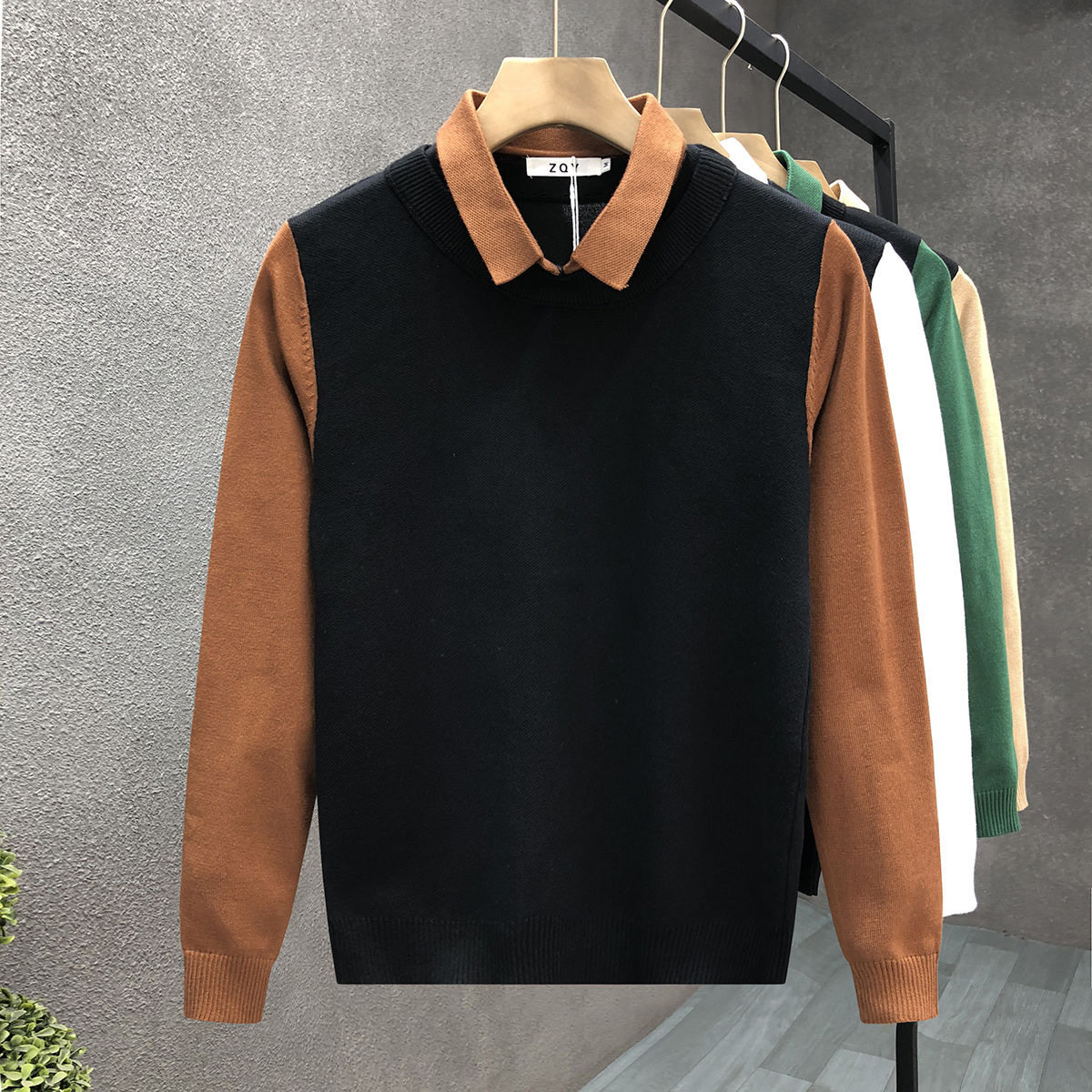 📚 假两件polo领毛衣男秋季穿搭成熟稳重男装修身商务休闲针织衫上衣