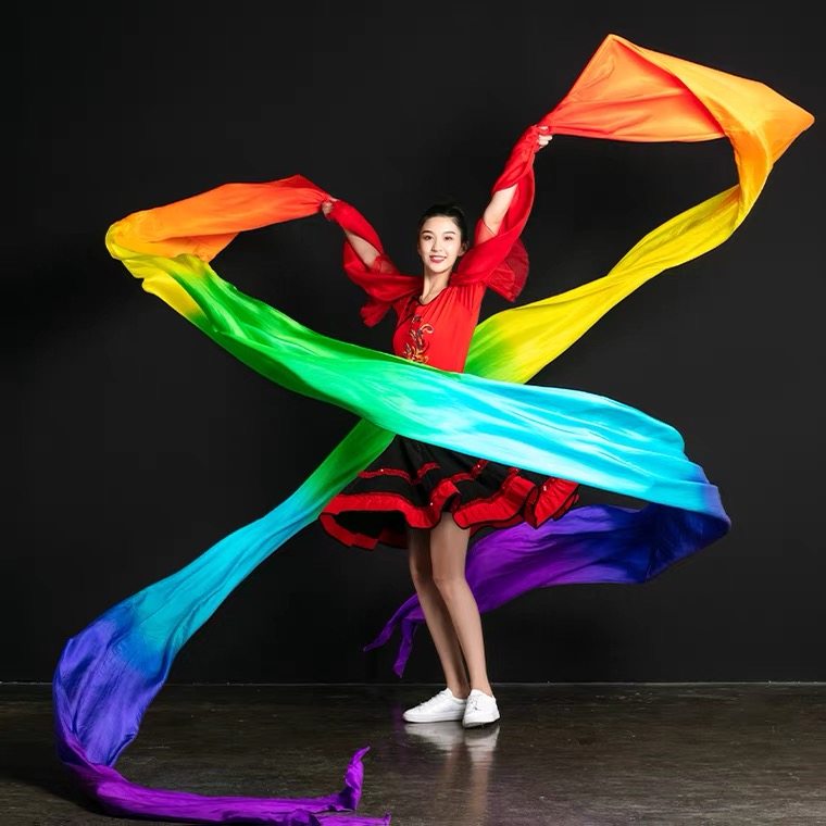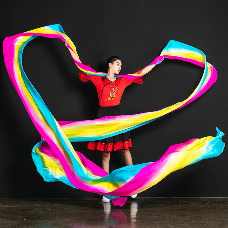 📚 李玉刚飞天舞真丝彩绸长绸舞蹈彩绸带棒儿童彩带丝带敦煌舞蹈飘带