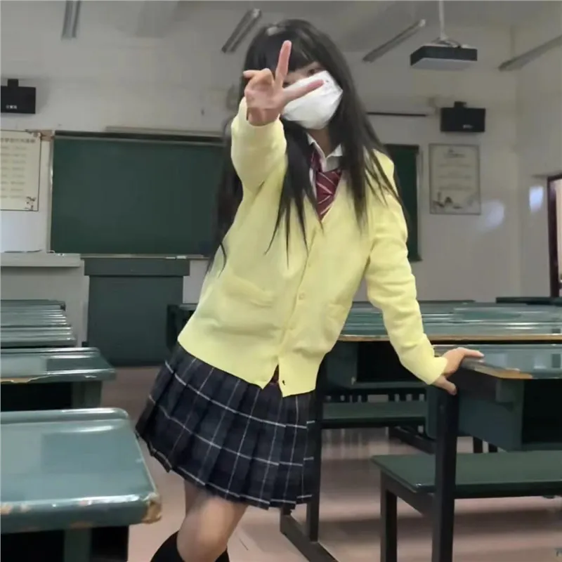 📚 秋冬韩系一整套/单件黄色毛衣女开衫外套小香风套装纯色针织衫