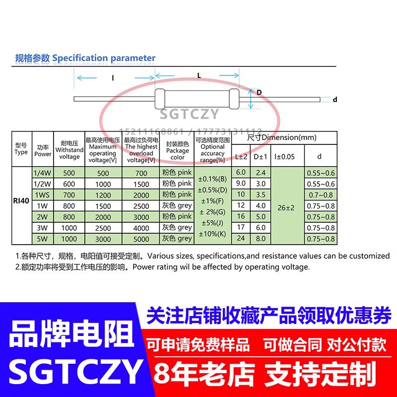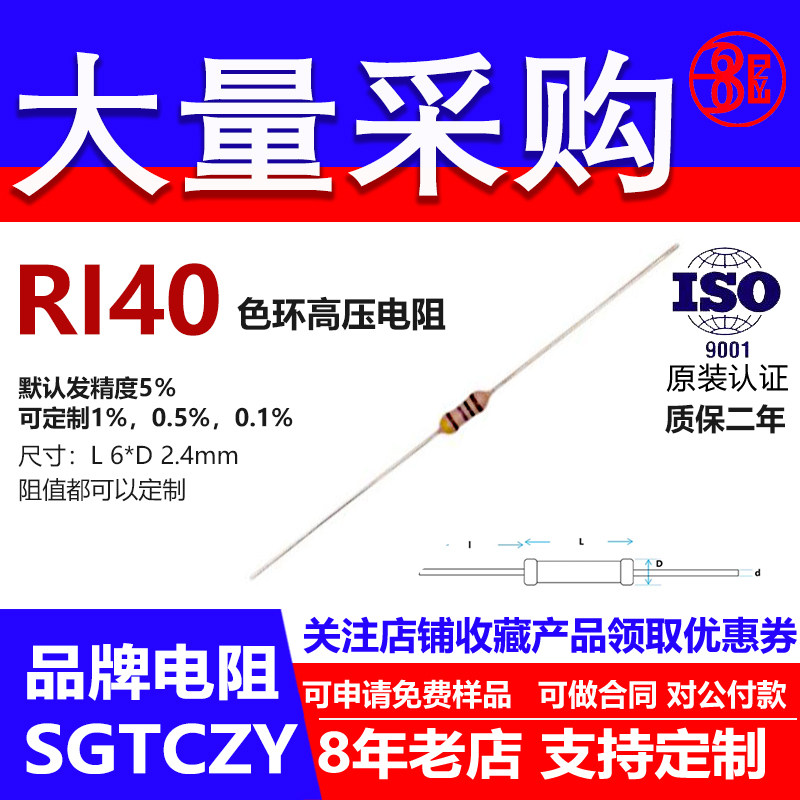 📚 RI40玻璃釉插件高频直插5%高压电阻1/4W56M60M75M80M90M100M兆欧