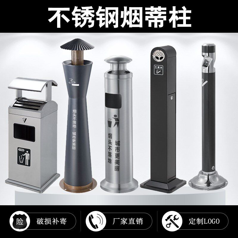 📚 室外不锈钢烟灰柱落地灭烟柱立式C烟灰缸吸烟区垃圾桶烟蒂收集器