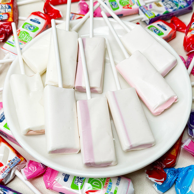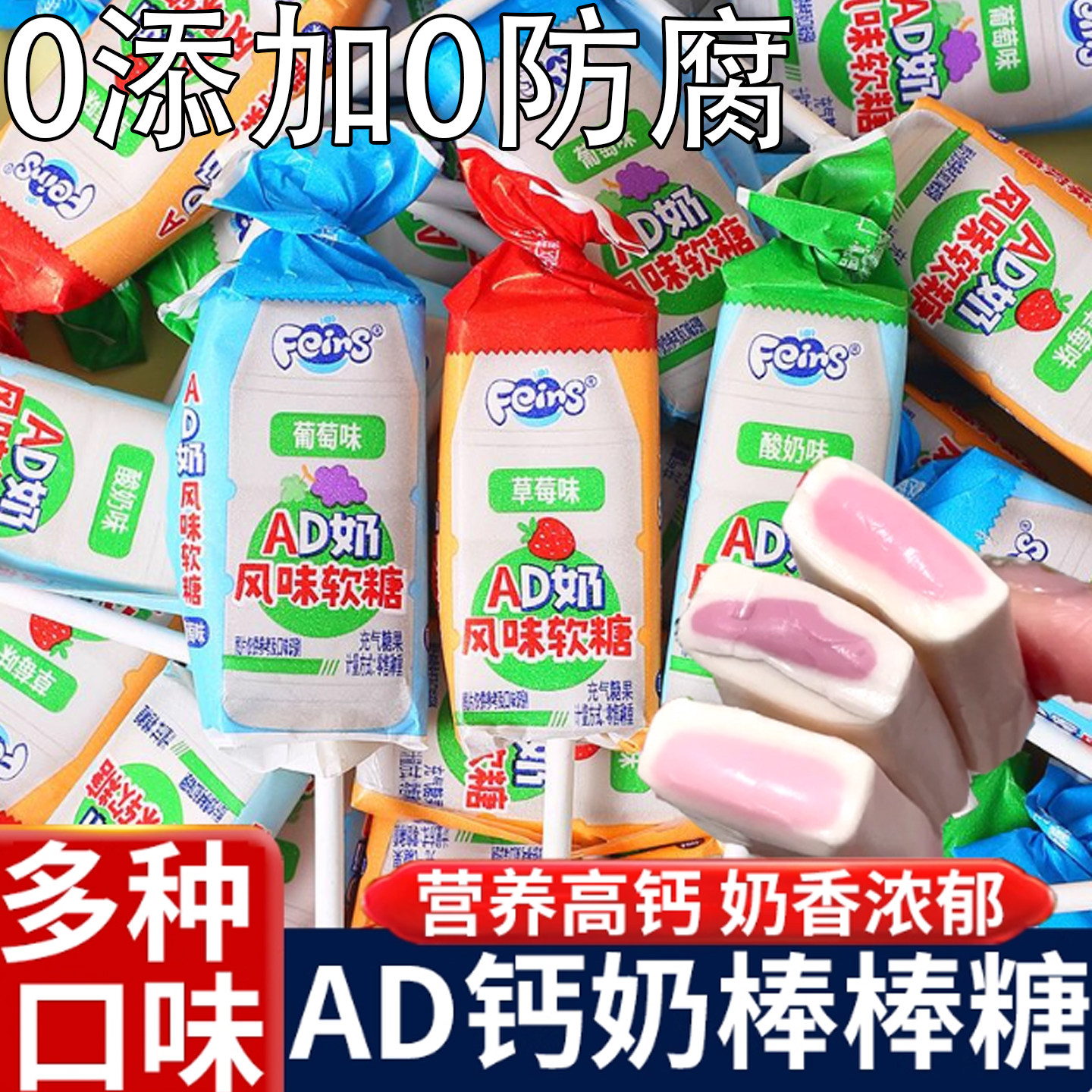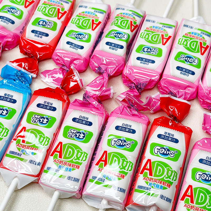 📚 ad钙奶棒棒糖芬仕牛奶糖乳酸味葡萄草莓味酸甜奶香味果汁软糖果