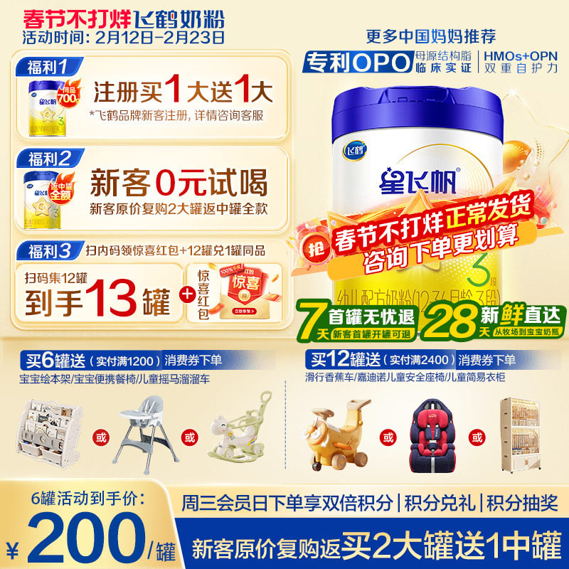 📚 注册送大罐】飞鹤奶粉3段星飞帆三段1岁婴儿奶粉700g育儿补贴正品