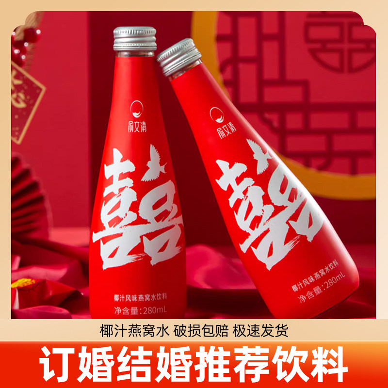 📚 俞文清椰汁燕窝水订婚摆台布置喜字装饰周岁气泡水伴手礼果汁饮料