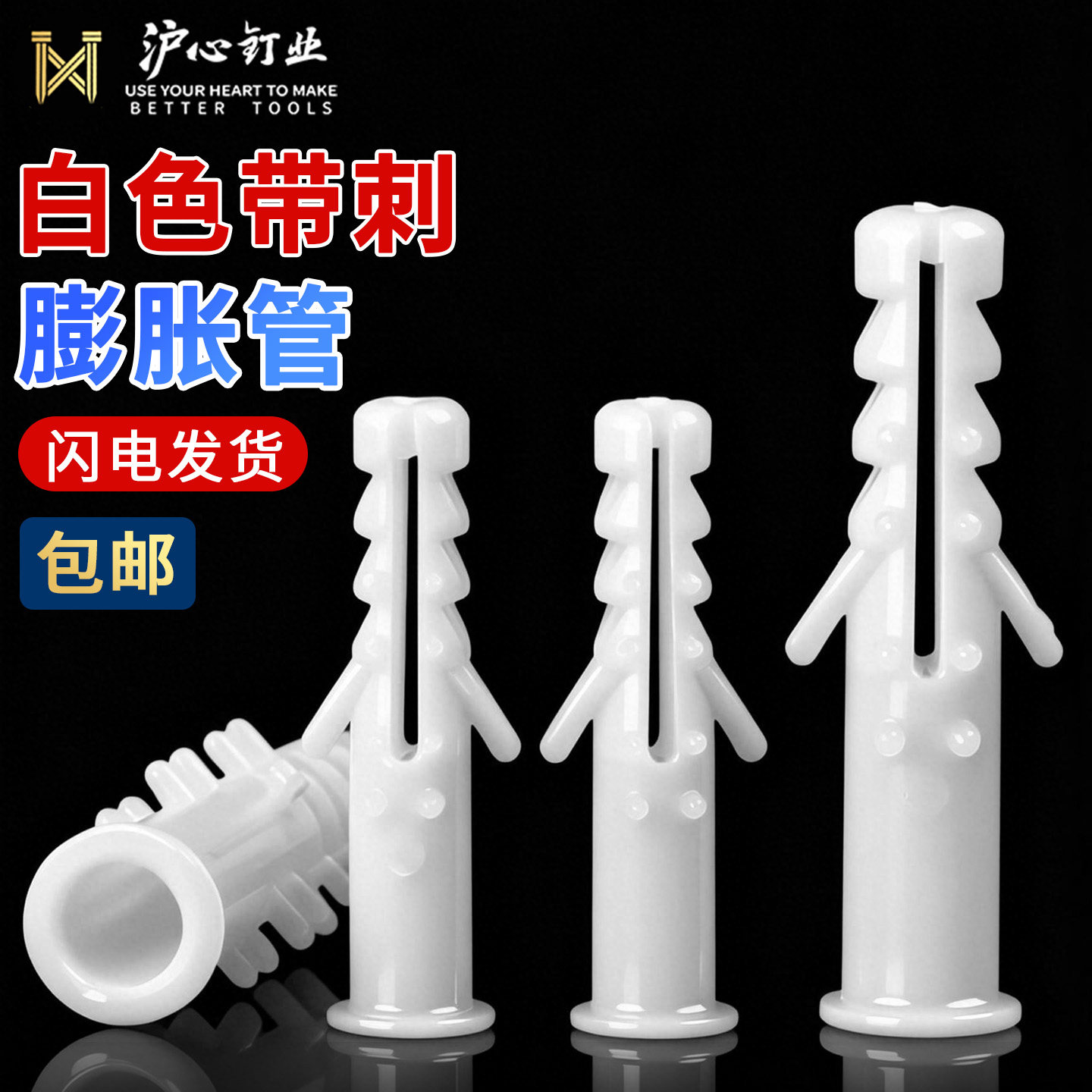 📚 沪心塑料膨胀管白色带刺6mm8mm圆形膨胀胶塞胶粒涨塞锚栓膨胀螺丝