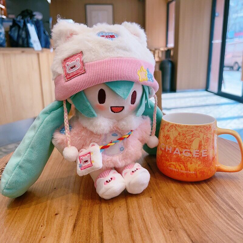 📚 可换装20厘米雪未来初音可爱棉花娃娃毛绒公仔玩偶fufu粉喵喵套装