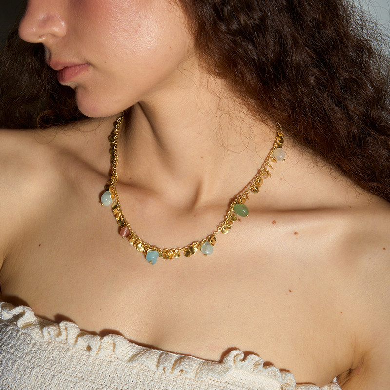 📚 DINN DINN DESIGN度假系列彩色珠珠流苏片片项链高级感百搭新款