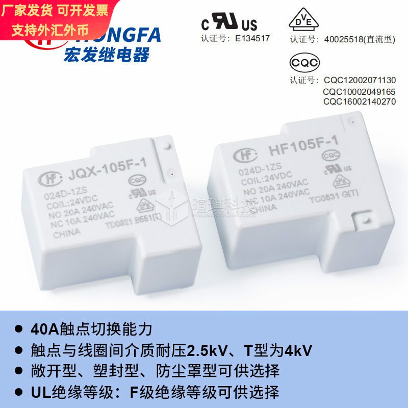 📚 宏发继电器HF105F-1 JQX-105F-1 T90继电器5脚 30A40A功率继电器