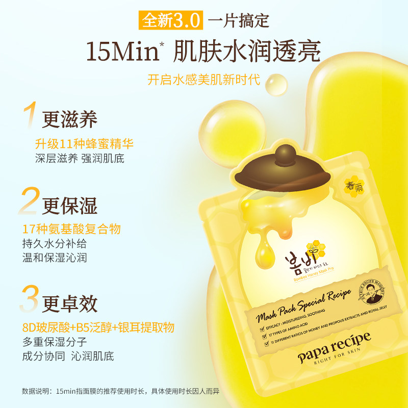 📚 【新年礼物】韩国黄春雨蜂蜜面膜补水熬夜玻尿酸官方旗舰店正品