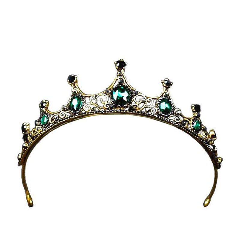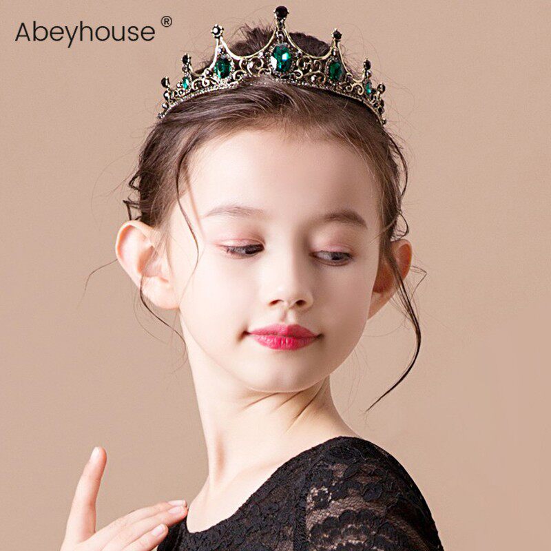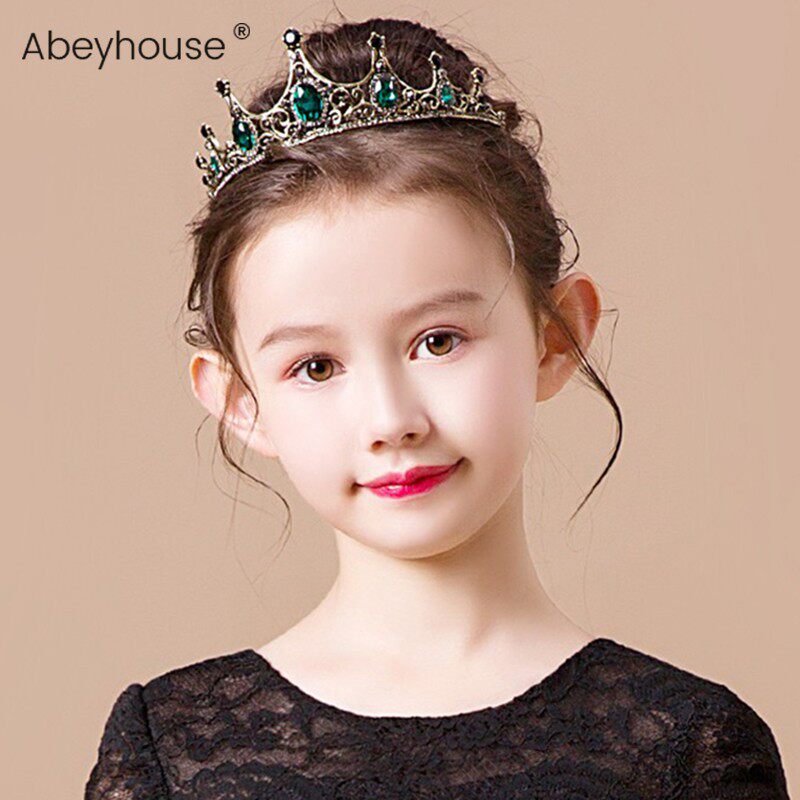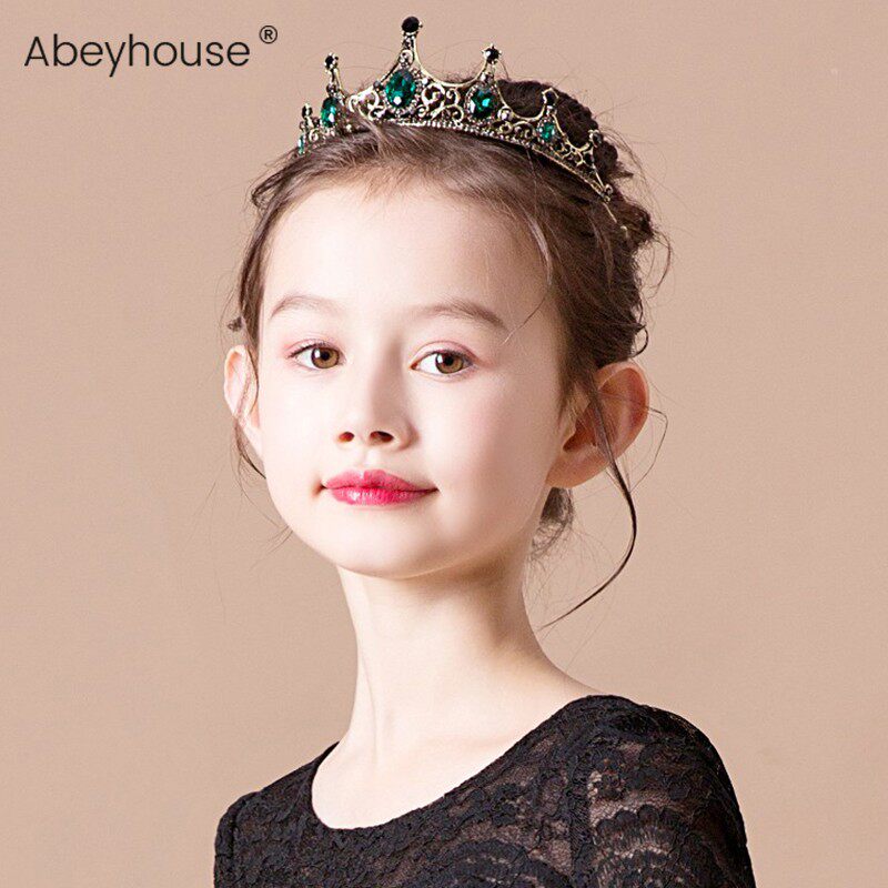 📚 女童发饰做旧复古巴洛克皇冠合金绿钻女表演儿童高贵典雅礼服头饰