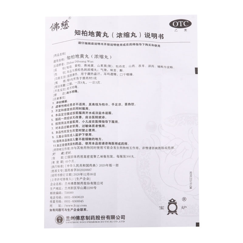 📚 佛慈知柏地黄丸浓缩丸360丸/盒滋阴清热口干咽燥耳鸣遗精潮热盗汗