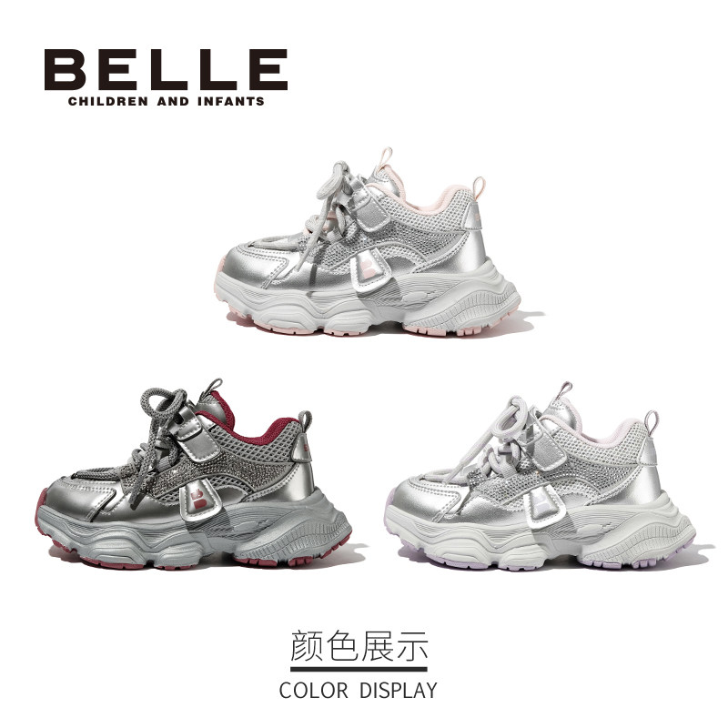 📚 百丽童鞋儿童厚底老爹鞋春季透气时尚运动鞋女童百搭软底休闲鞋子