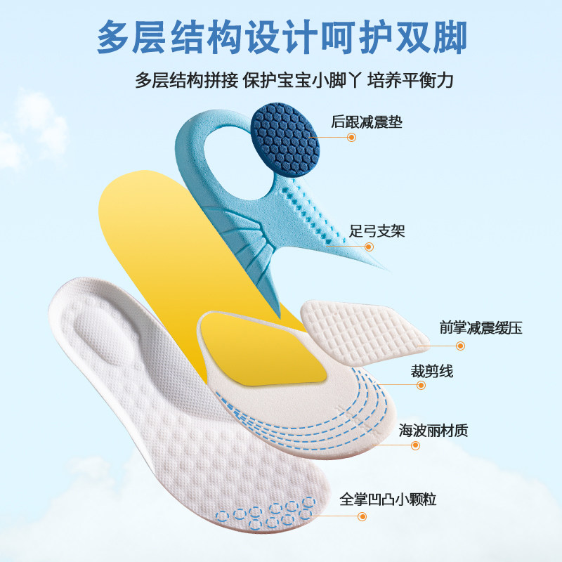 📚 3双装儿童运动鞋垫男孩可裁剪篮球跑步女童宝宝吸汗透气安踏专用